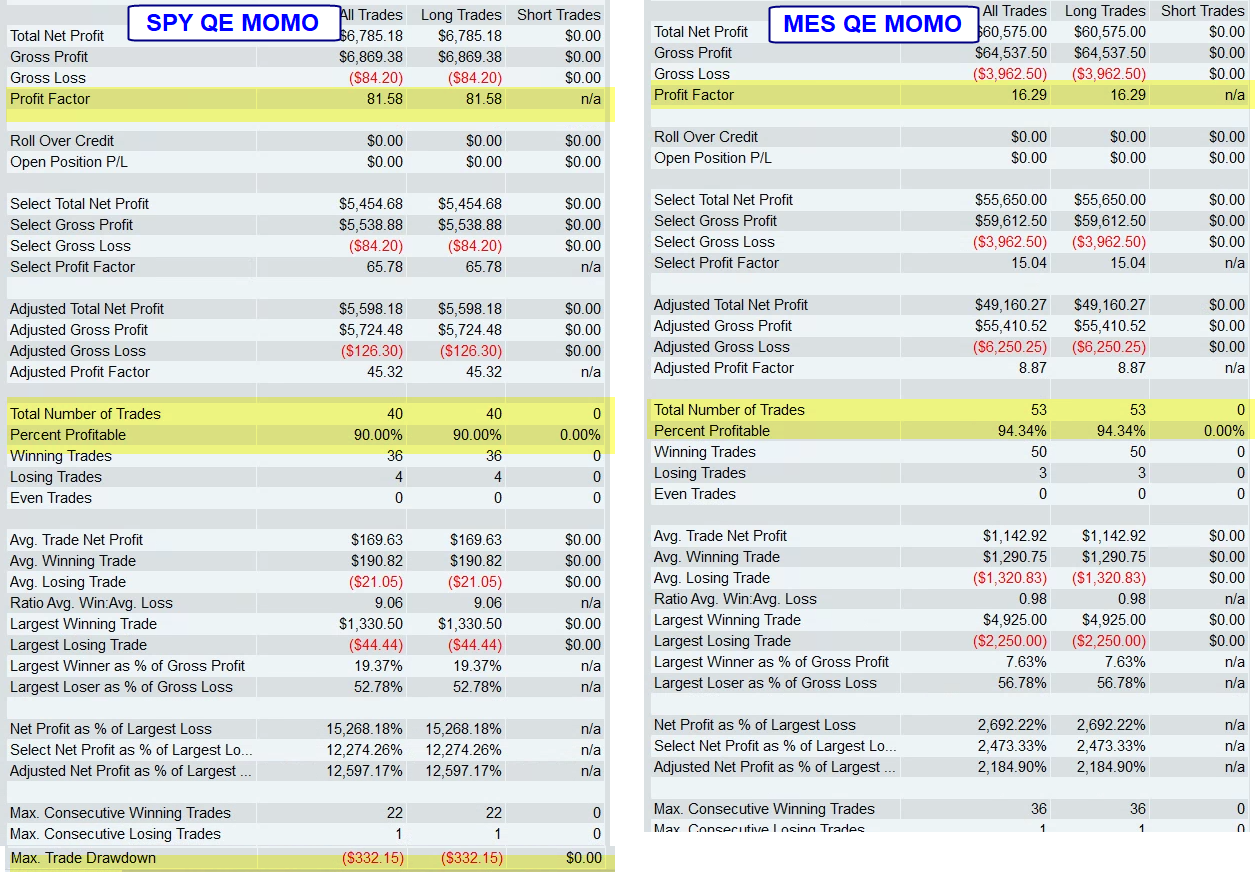 As you know the QE MOMO kicked off a long yesterday in SPY and ES - so far a nice trade!