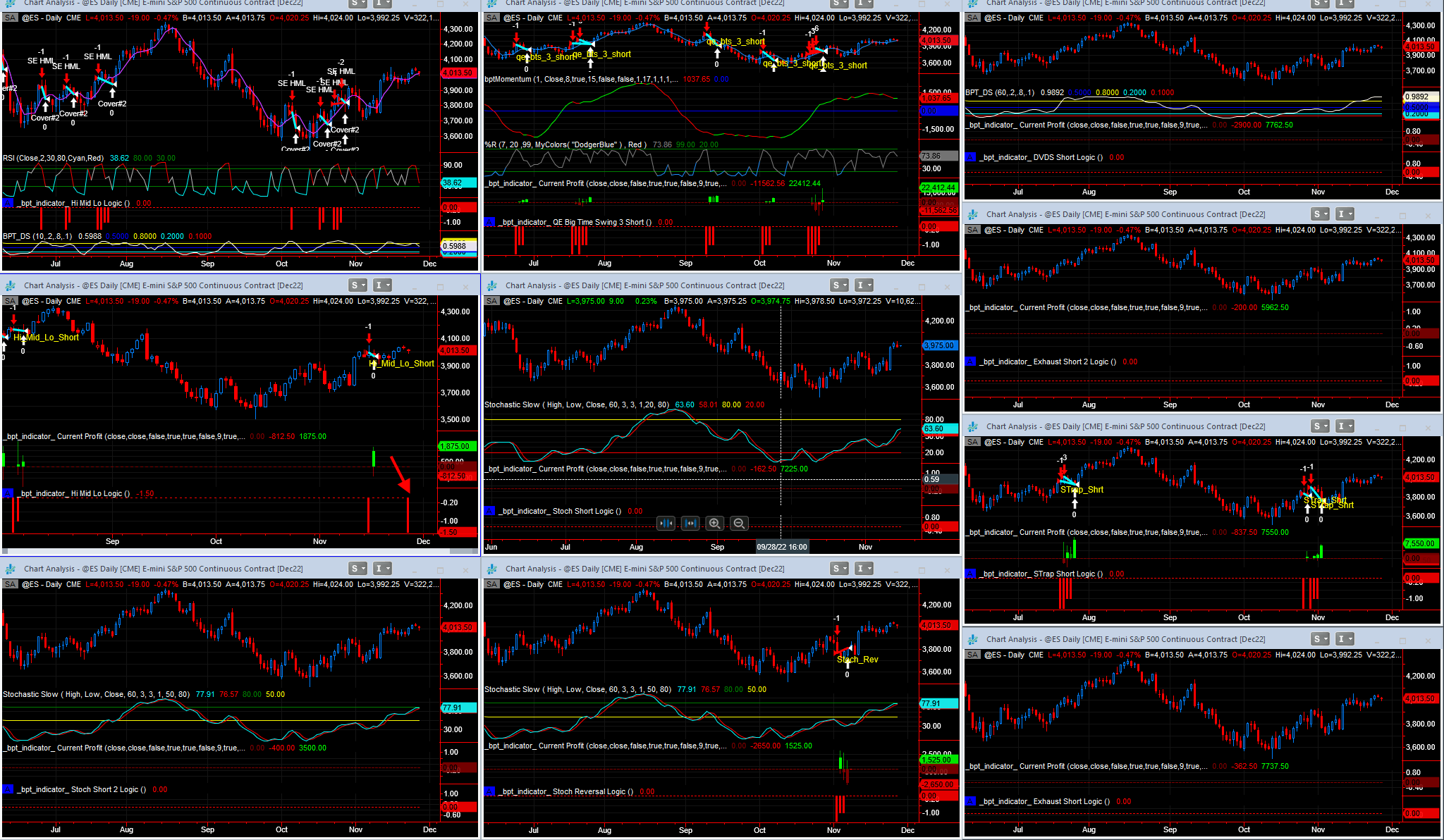 Good morning all and happy Monday. FYI the hi mid lo system is meeting conditions for a 1st entry short again on ES (far left middle chart). We've seen this system try and trigger over the last week or so a few times only to lose the conditions by the close. We'll see if the conditions hold today by the close or go away again. . I've also included the stats. This is Ver 1 of the hi mid lo, I have two versions.