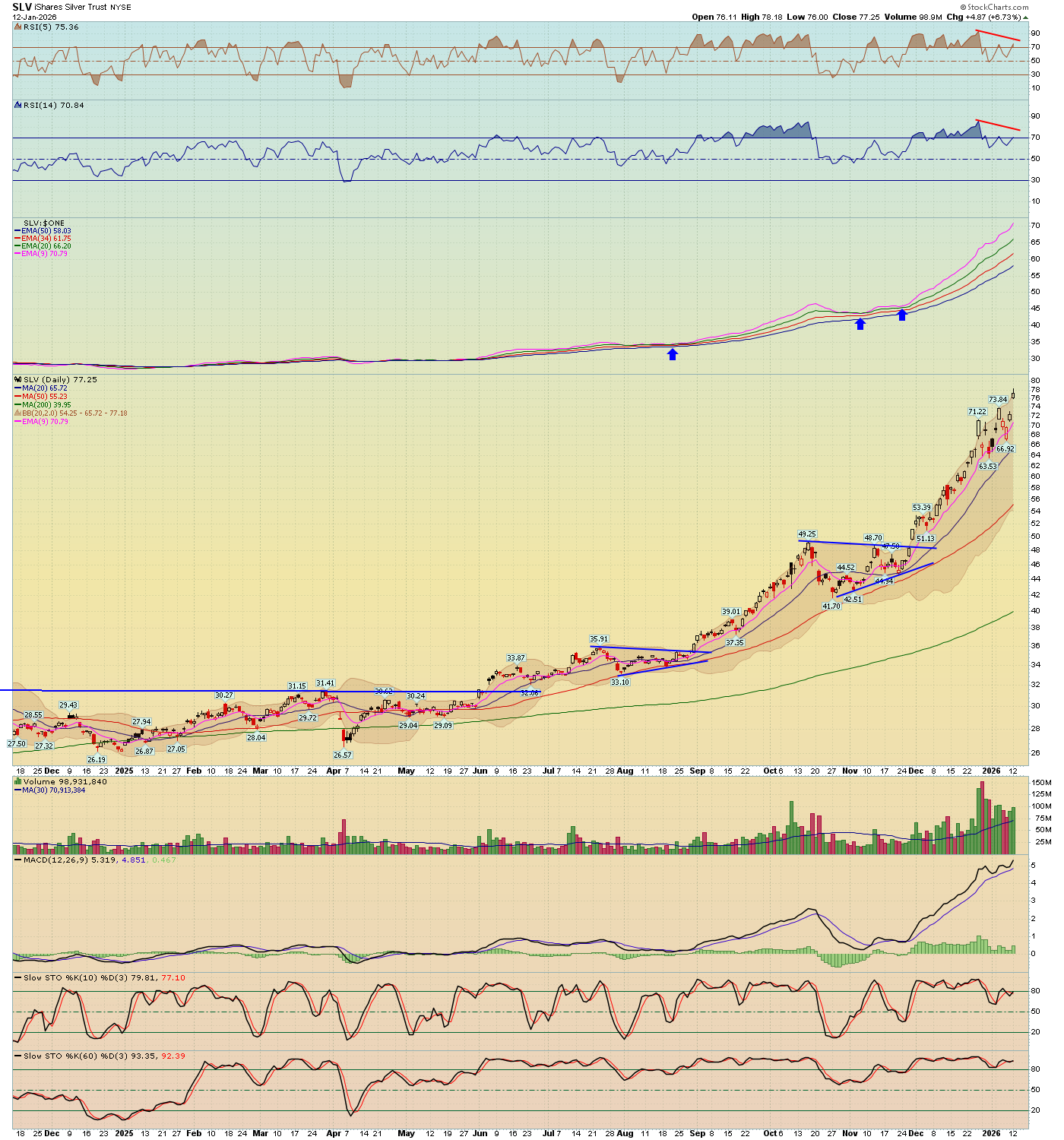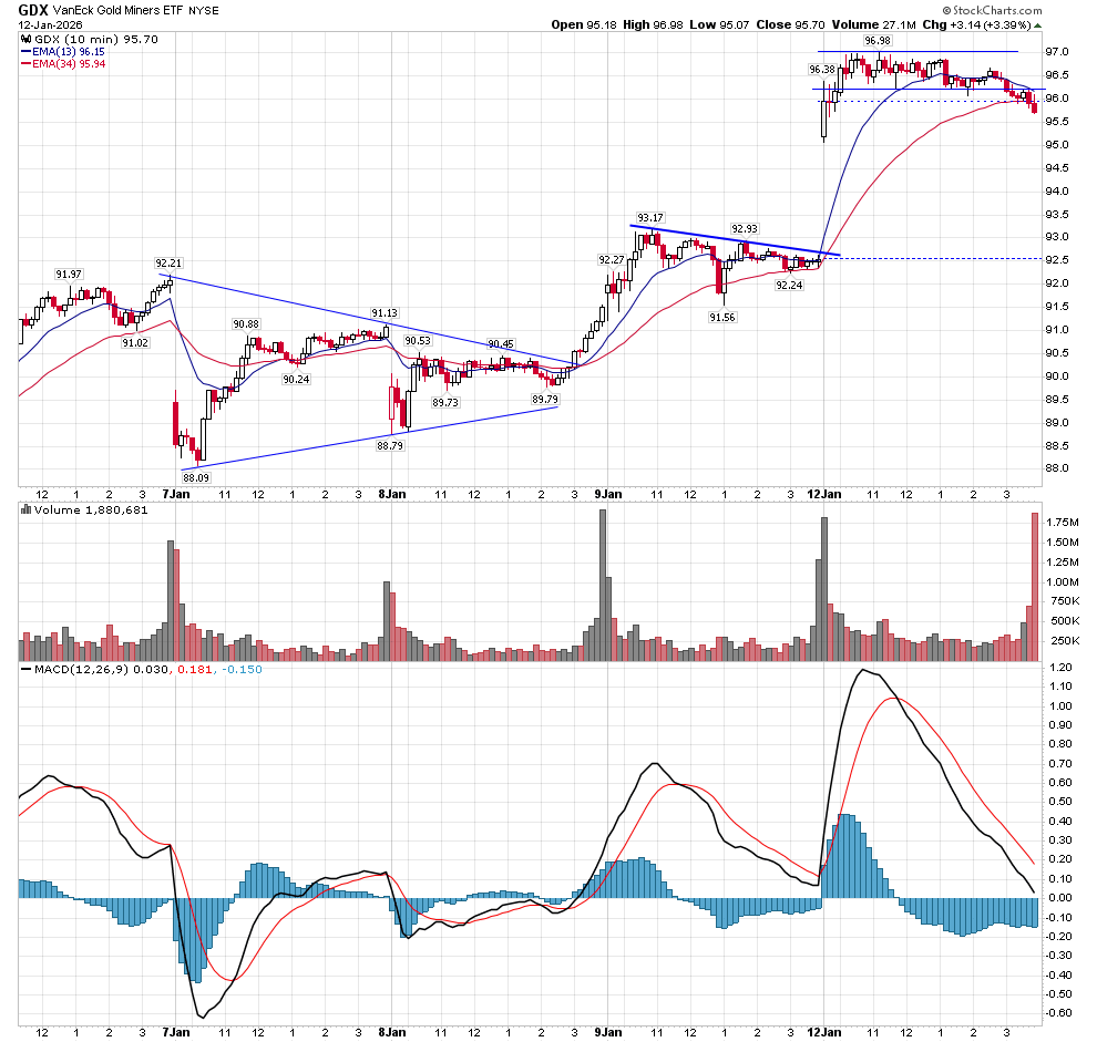 Bought DUST today 5.78 this afternoon as GLD had topped at least short term and was generally one of the weakest Metals. Although all are still green. Notice fewer Leaders now.