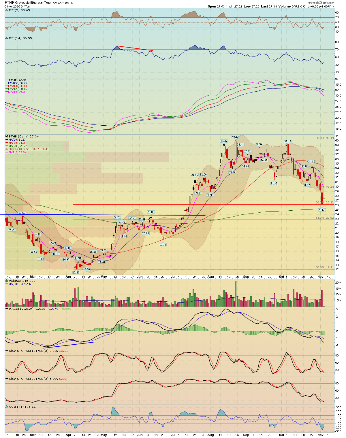 ETHE - Chart Link- bought a started yesterday, so far gap into the middle of yesterday's down candle range