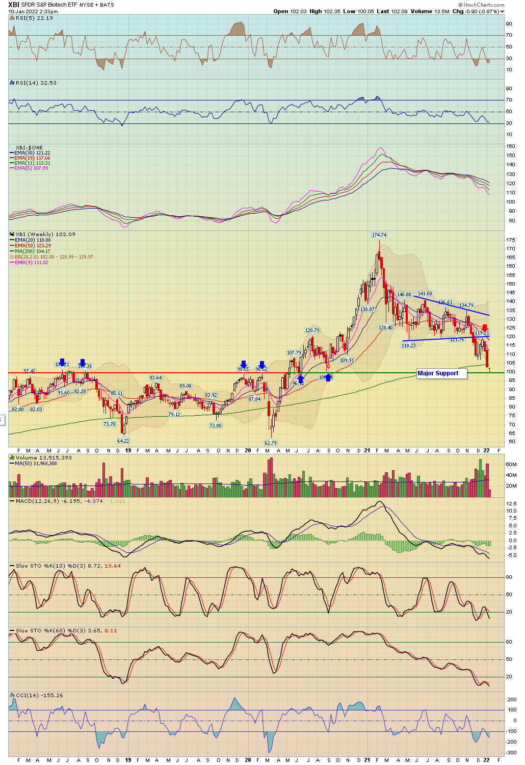 XBI - Chart Link weekly, tagged my 100 target area