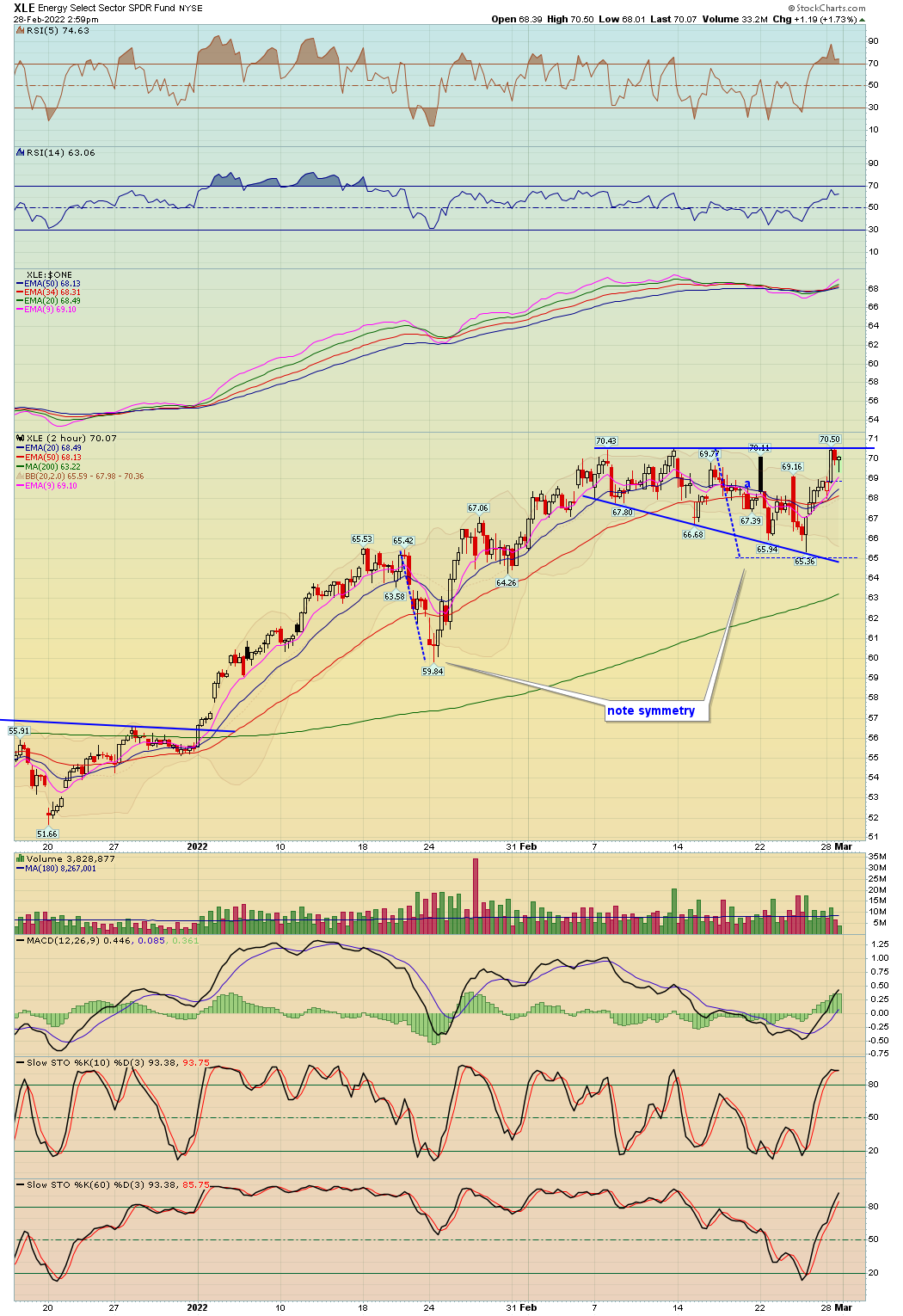 XBI - Chart Link possible wedge forming, note symmetry that price needs to exceed to end that downtrend on that time frame, for now use it as a possible target area