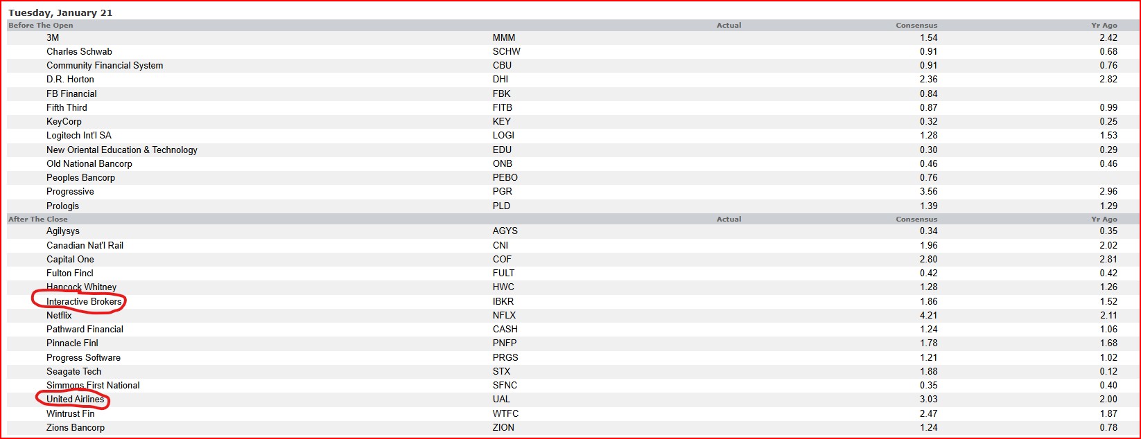 United Air Lines (UAL) aslo reports 1/21 -Tuesday