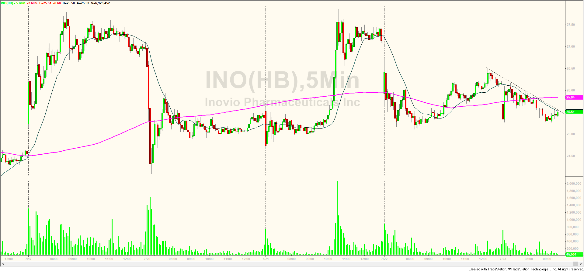 INO finding 5 min resistance at trendline. Potential trade if breaks.