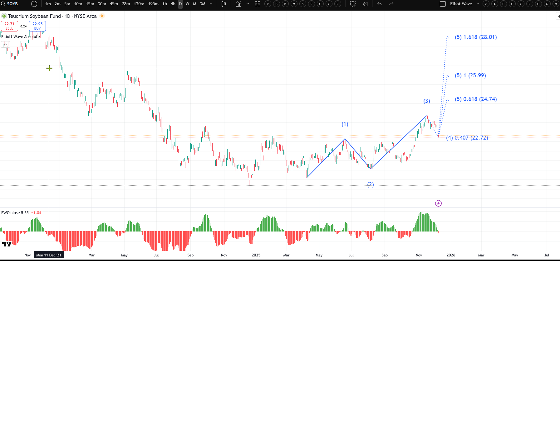 Tradingview's somewhat new Elliot Wave tool is kind of cool. makes the setup more interesting if soyb holds that support