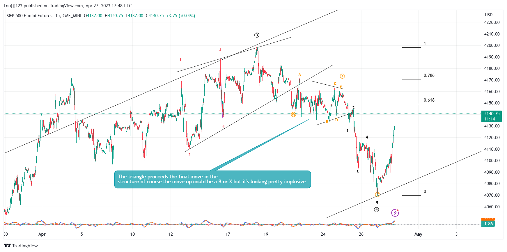 If the market broke out of that triangle on the 10 minute chart then we should expect a substantial bounce in price and or time Relative to a 10 min chart because triangle only occur in X, B and 4 and are followed by the finial wave where that finial wave ends is yet to be decided