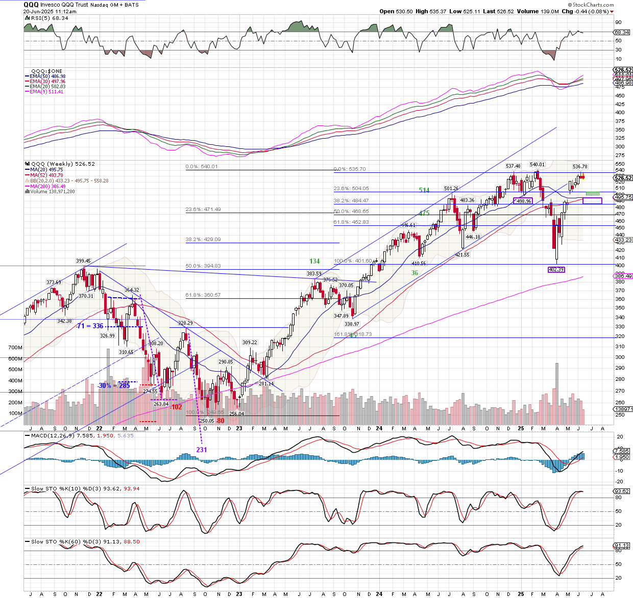QQQ- Potential for a nice H&S on the daily/weekly if we could pull back to the 500 area... some MACD divergence here at the highs.