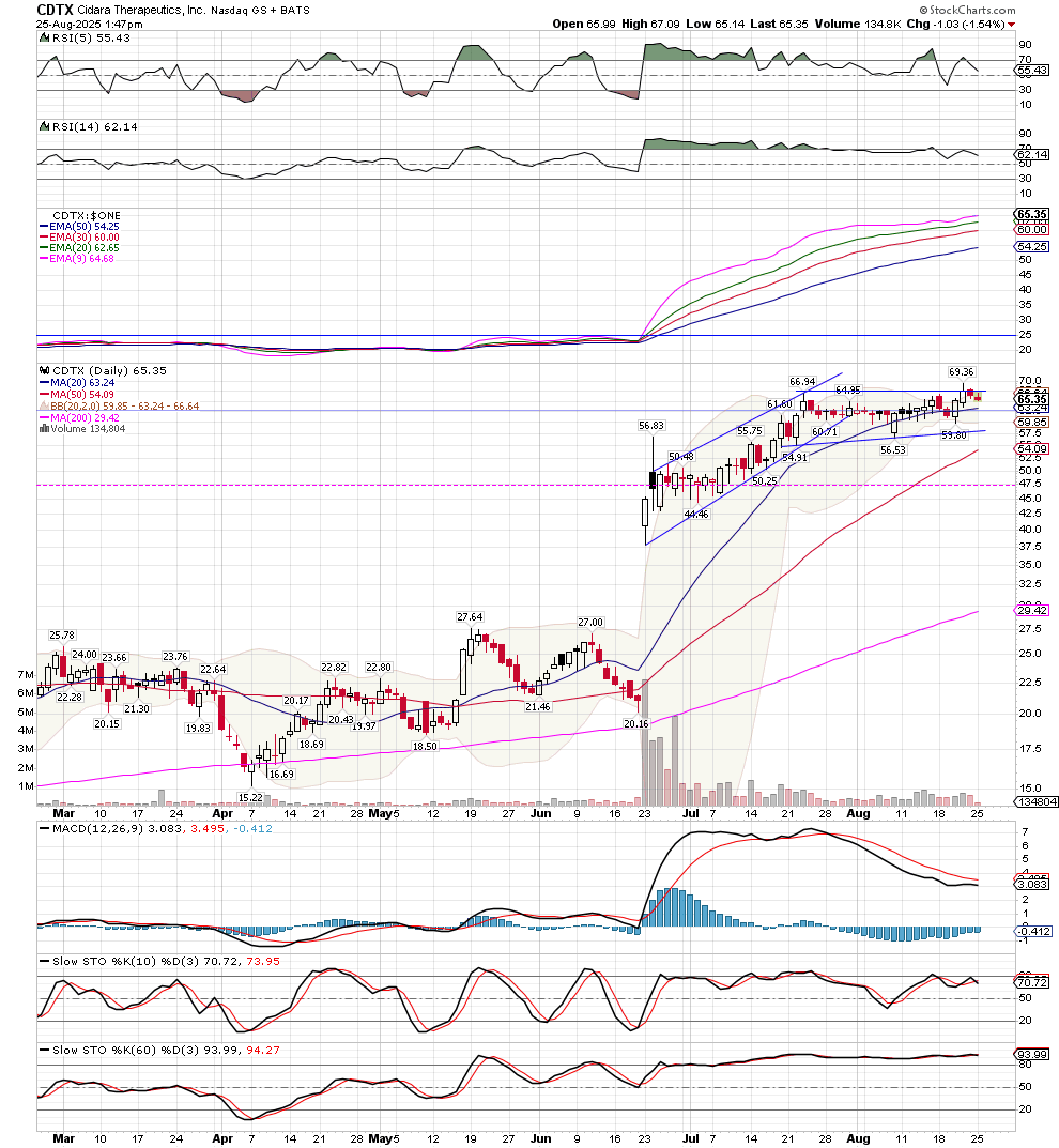 CDTX- Cidara Therapudics has been a slow and steady mover since a massive insider buy in June. MACD is recycling nicely during this consolidation.