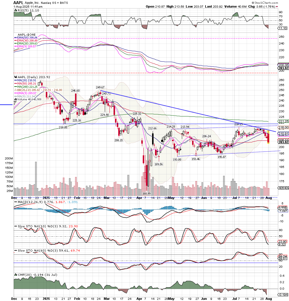 AAPL- Gave up that and more! Not getting above that trendline was a warning for me.