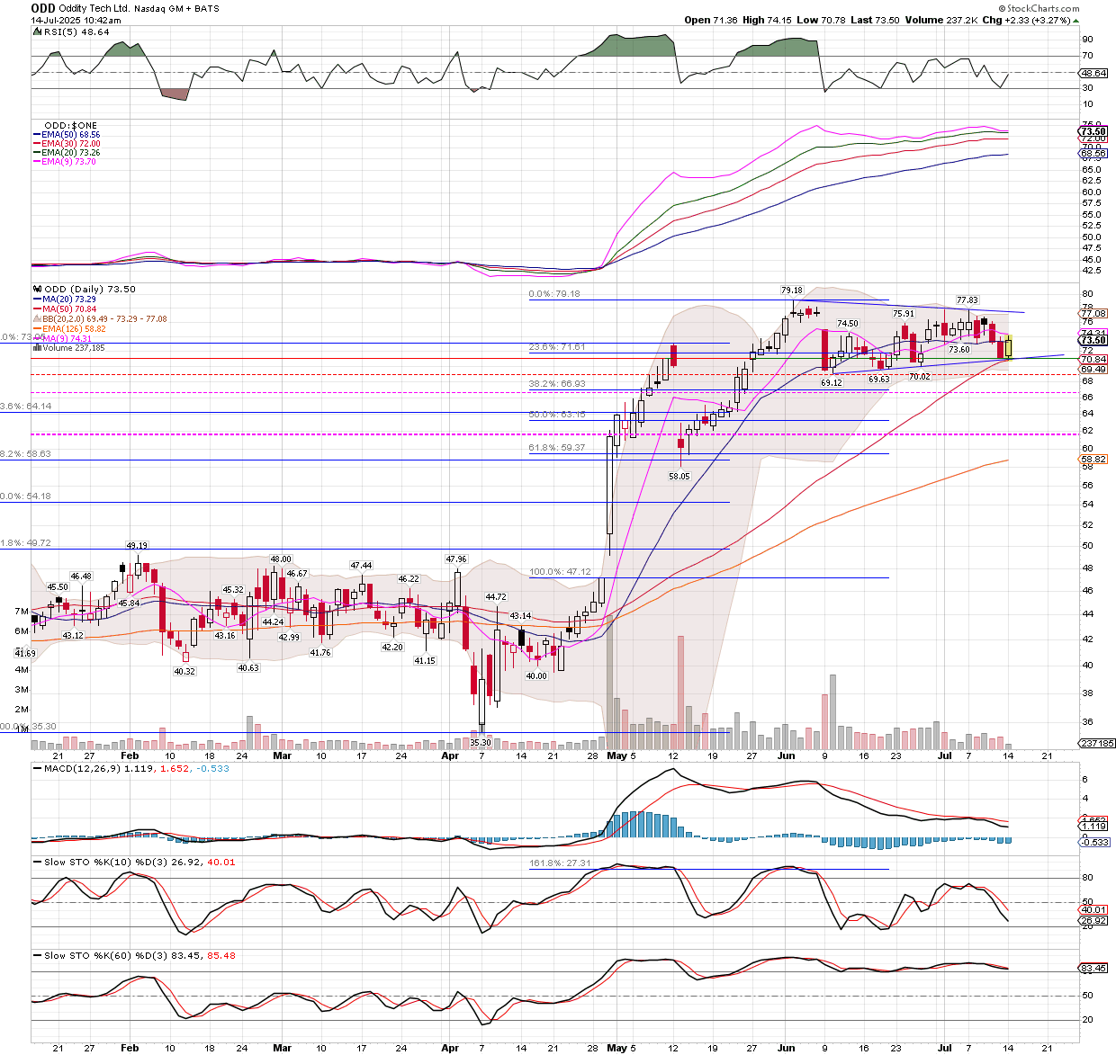 ODD- nice candle today, bouncing off the lower trend line and the 50 day...