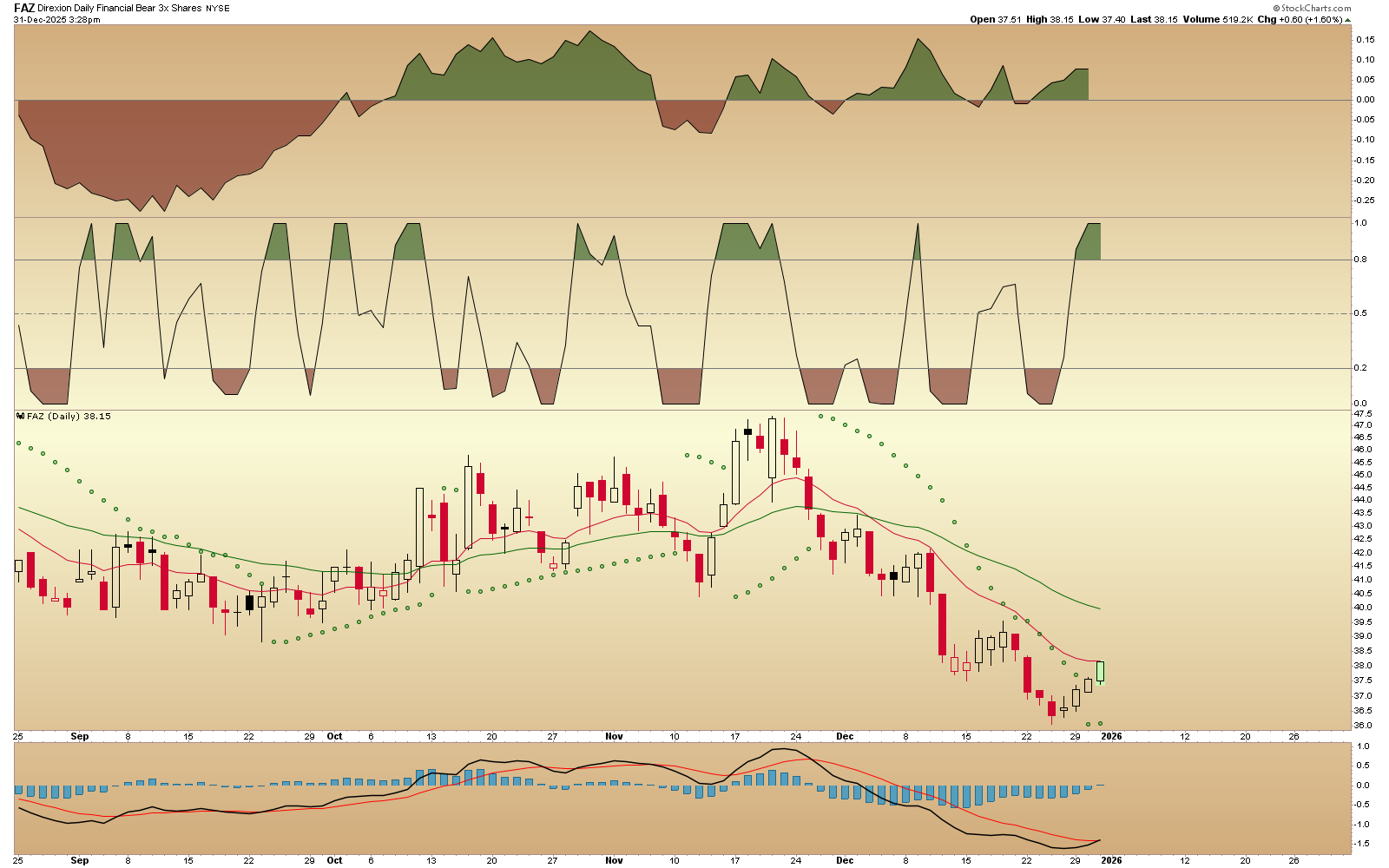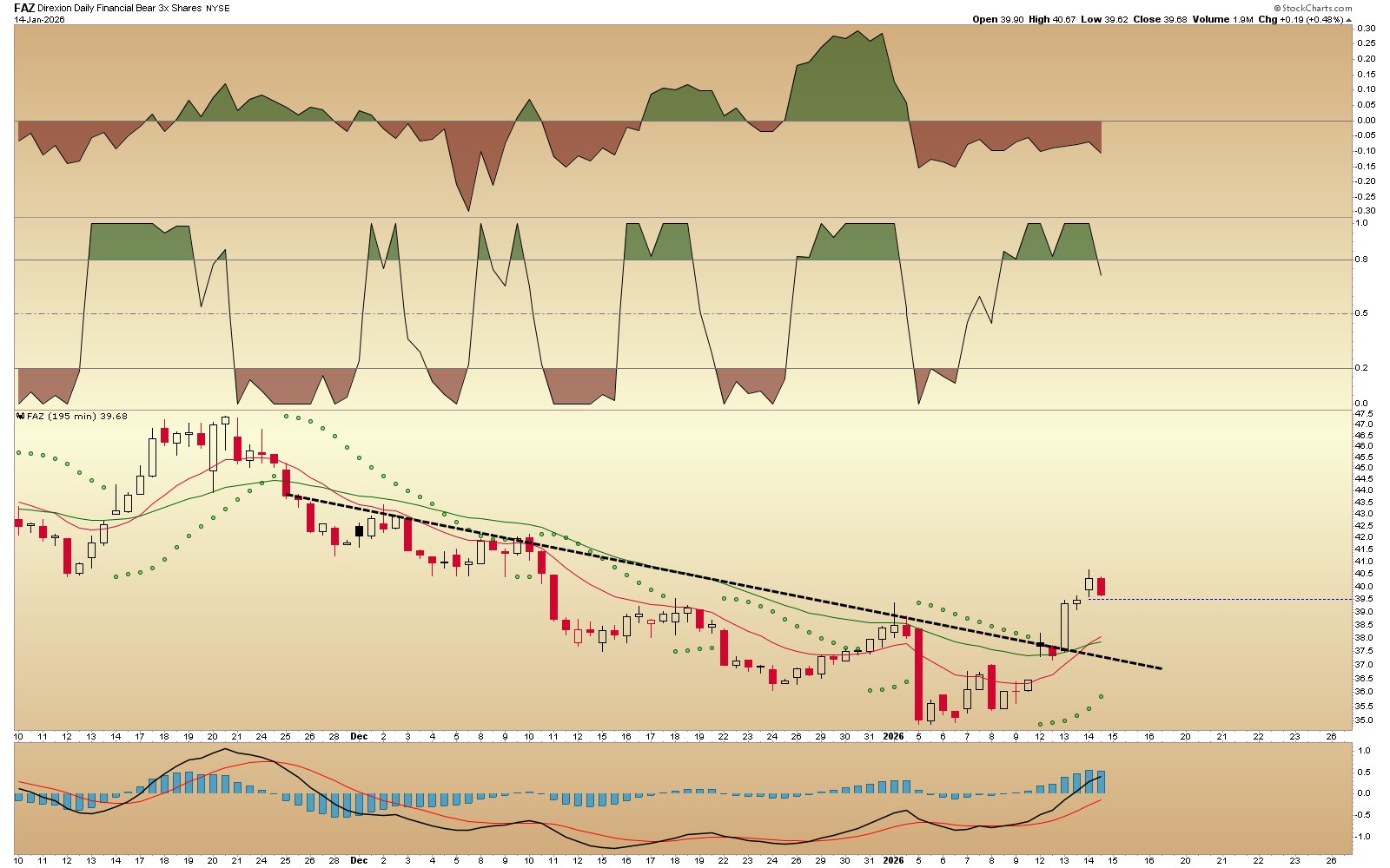 FAZ - I was early but luckily didn't buy then. Can be bought with a pullback imo