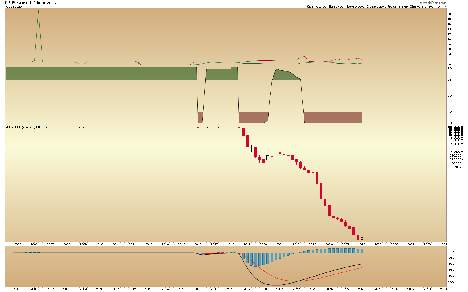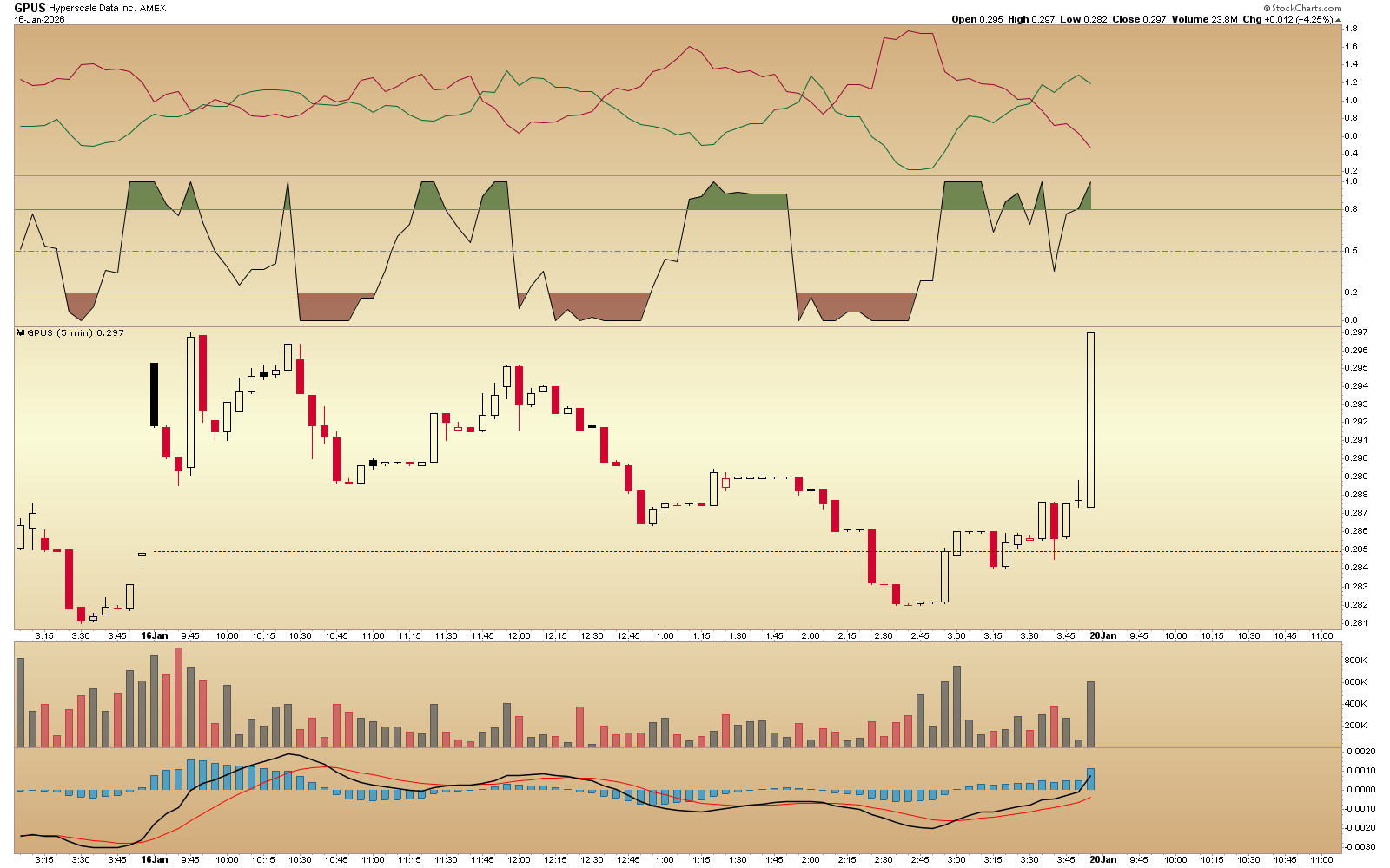 GPUS (used to be NILE) - quarterly and 5 min - Did some bottom fishing today