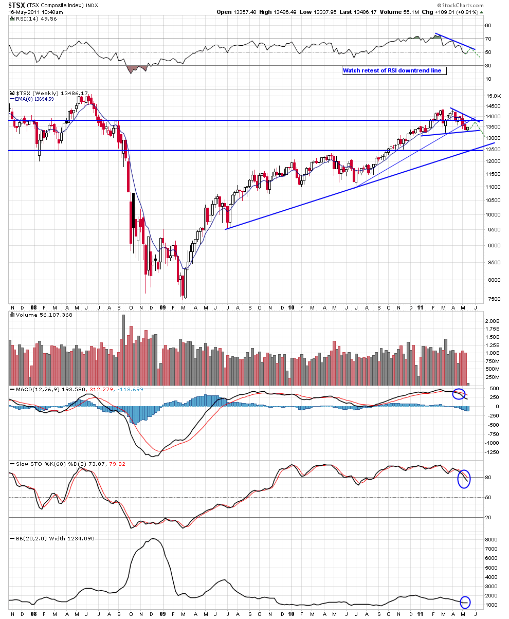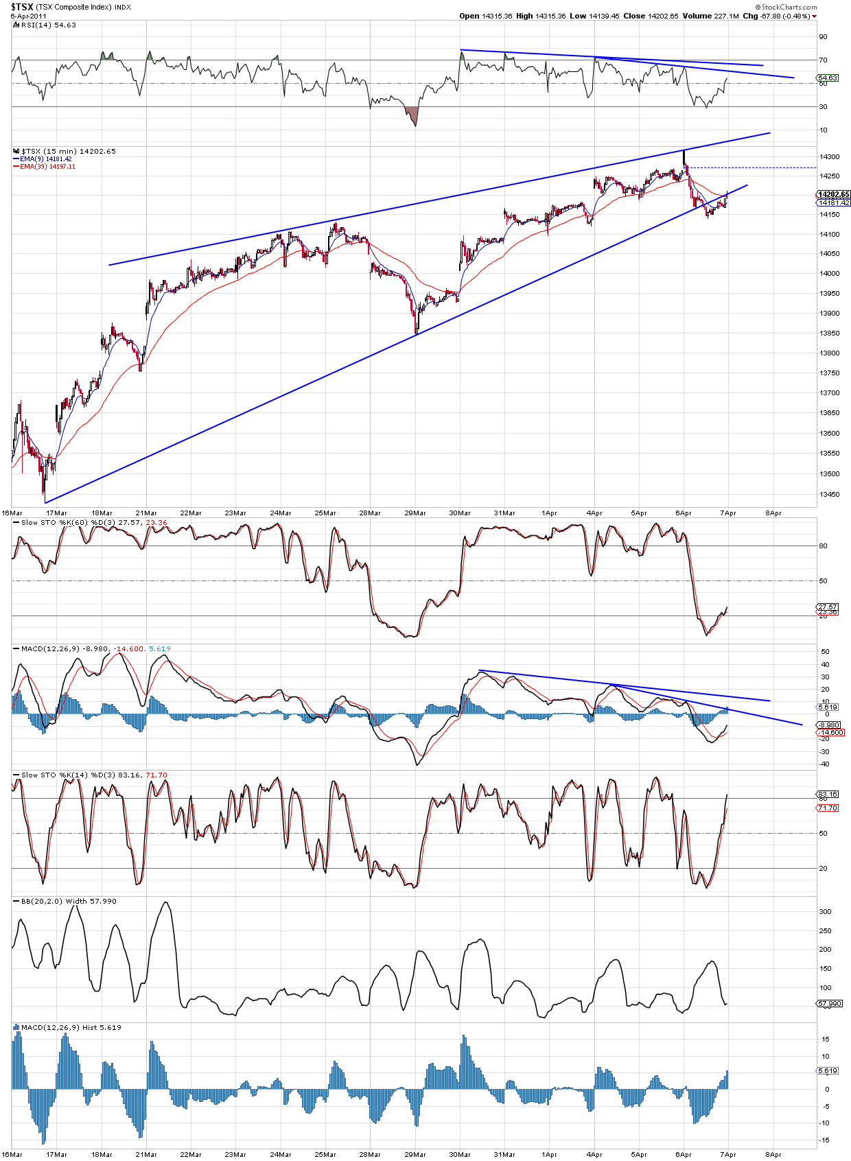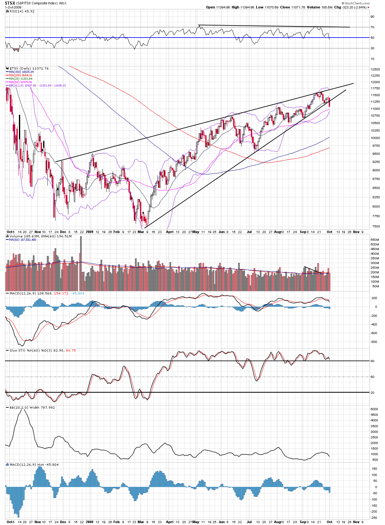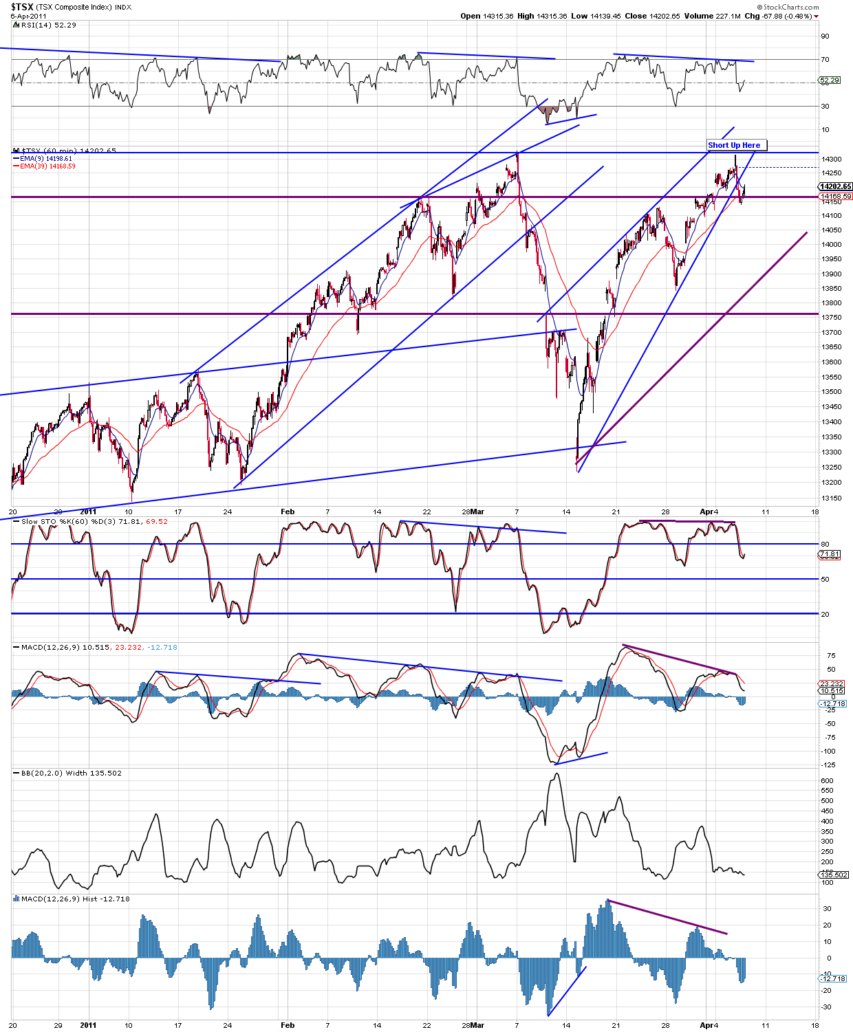 The TSX jumped approx 140 points (appox 1%) this morning and then reversed mid day. Looking at HXD.TO (bear fund), it may have been a retest of the breakdown. Or a retest of the breakout for HXU.TO.