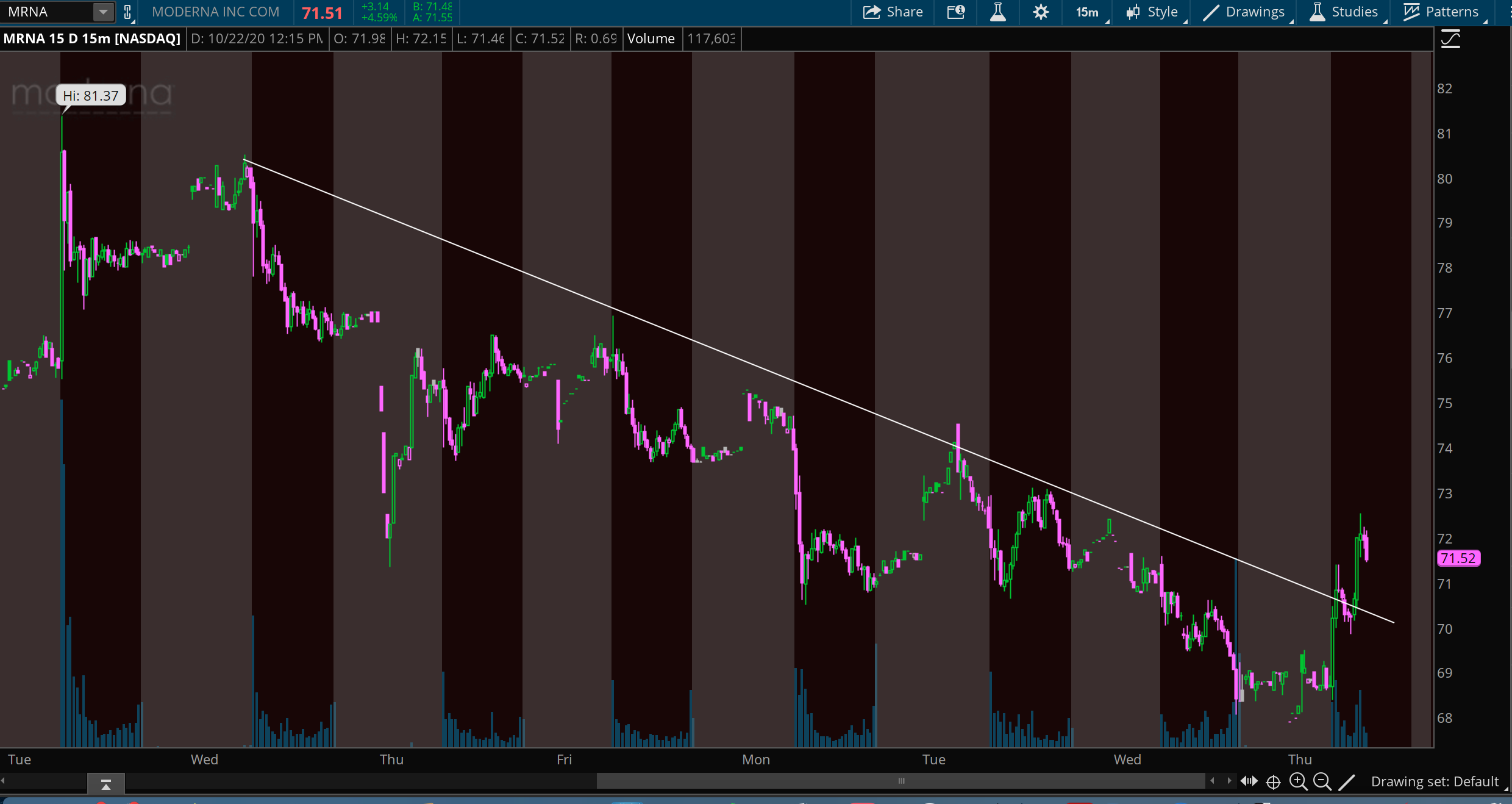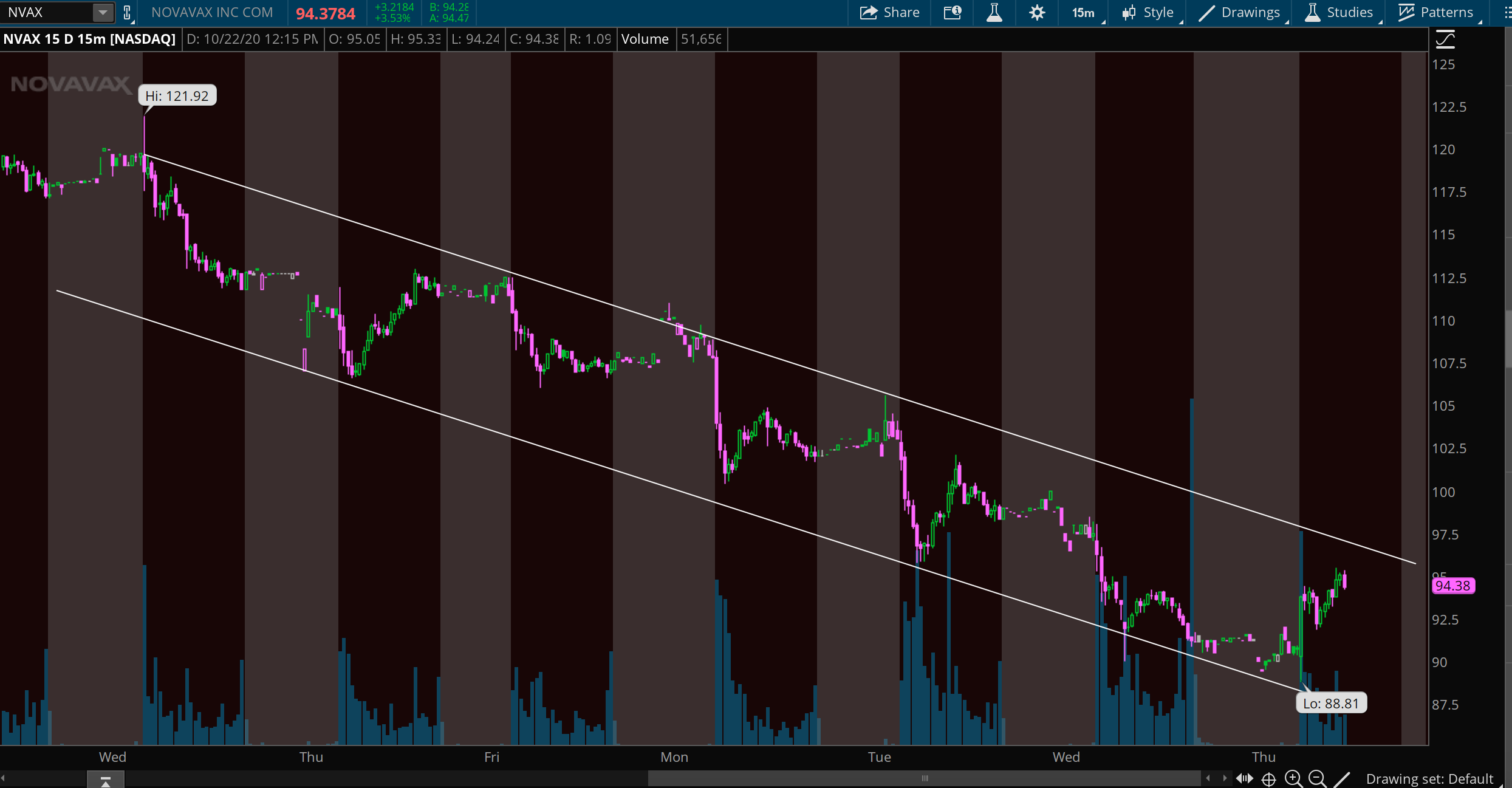 Vaccine makers NVAX and MRNA in downtrend channel.