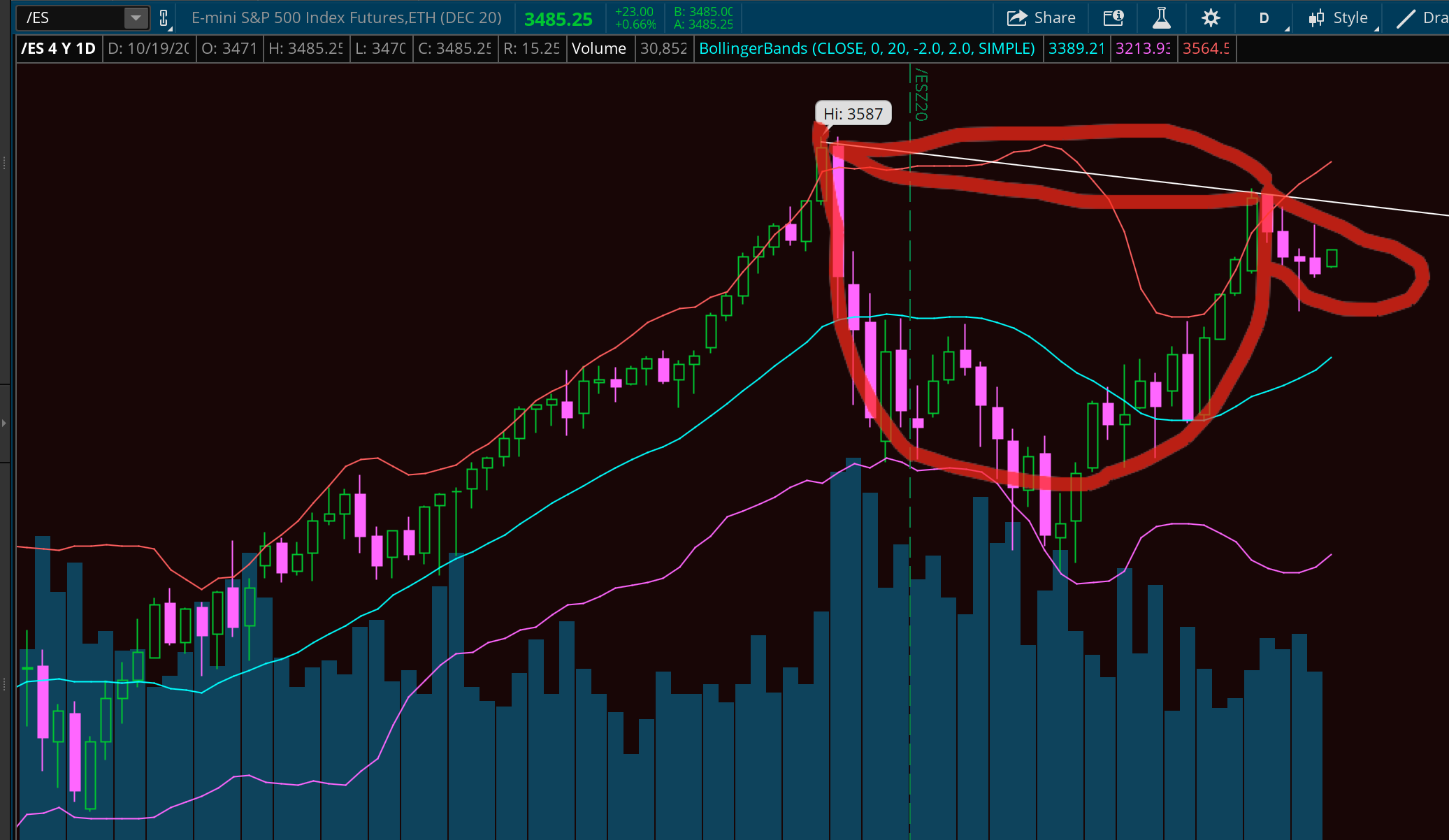 /ES Cup and Handle pattern developing