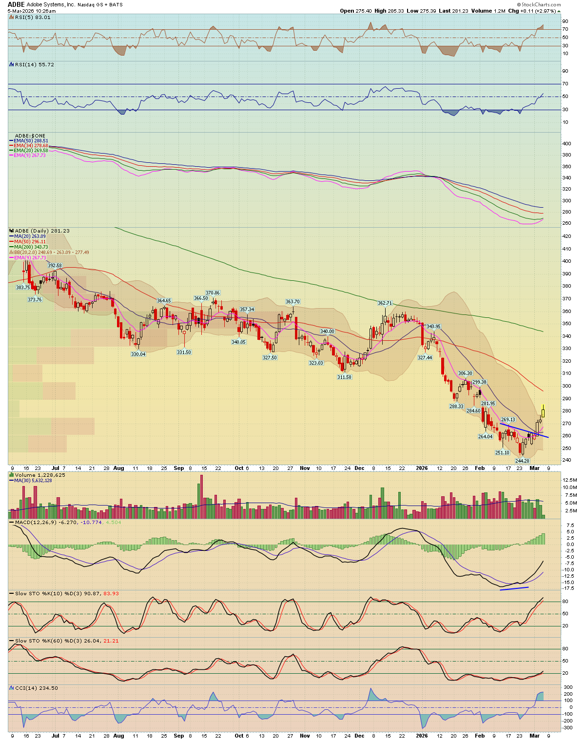 ADBE daily - Adobe Systems, Inc. - Chart Linkopen gap above, otherwise the general market is weakening