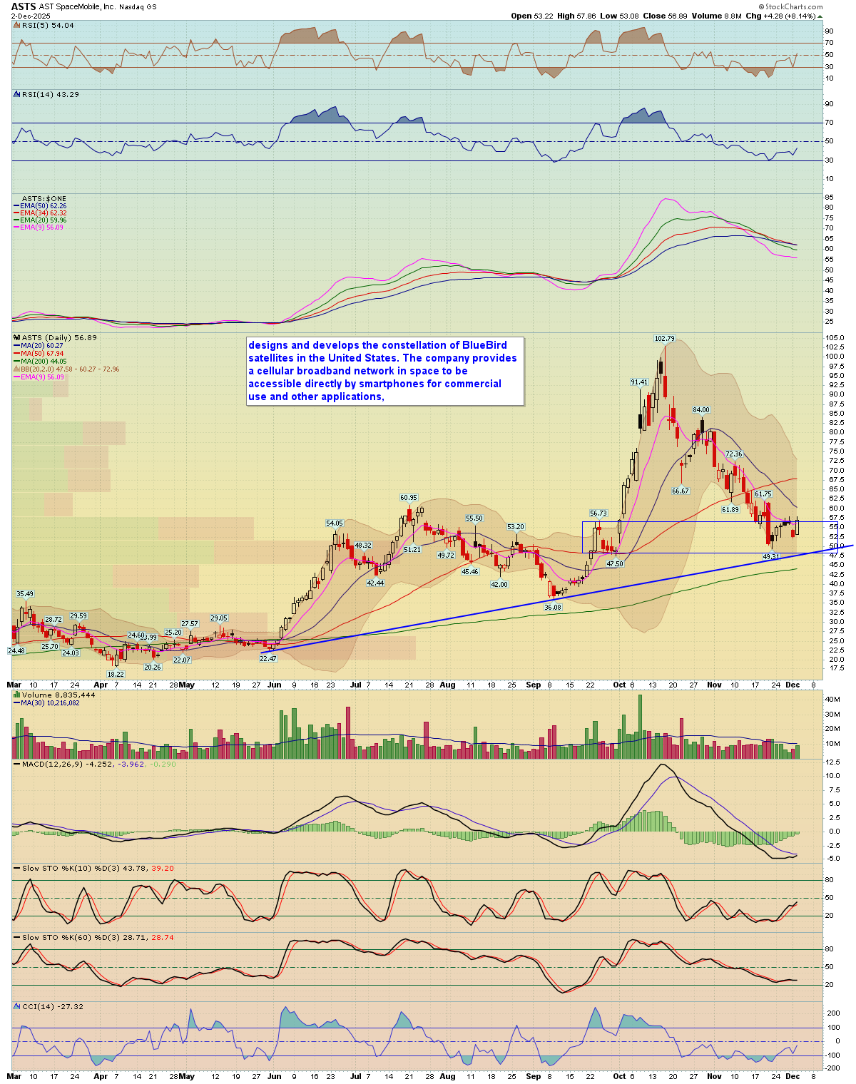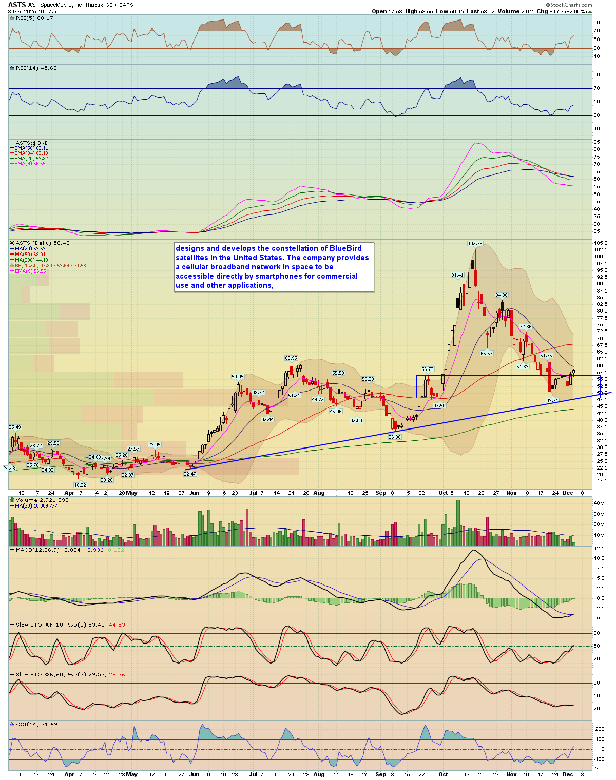 otherwise interesting stock, seems sort of like a Star Link and Bezos satellite internet competitor (designs and develops the constellation of BlueBird satellites in the United States. The company provides a cellular broadband network in space to be accessible directly by smartphones for commercial use and other applications,)