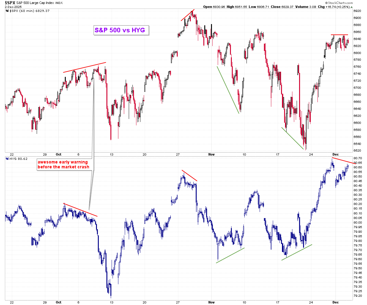 Compare - SPX vs HYG 60 min - Chart Link divergence is now erased