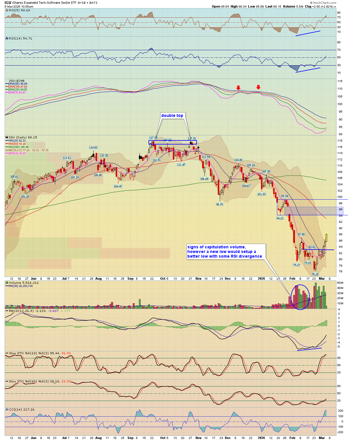 the market is weakening so if you have nice gains on IGV and some software stocks you could consider locking some gains in