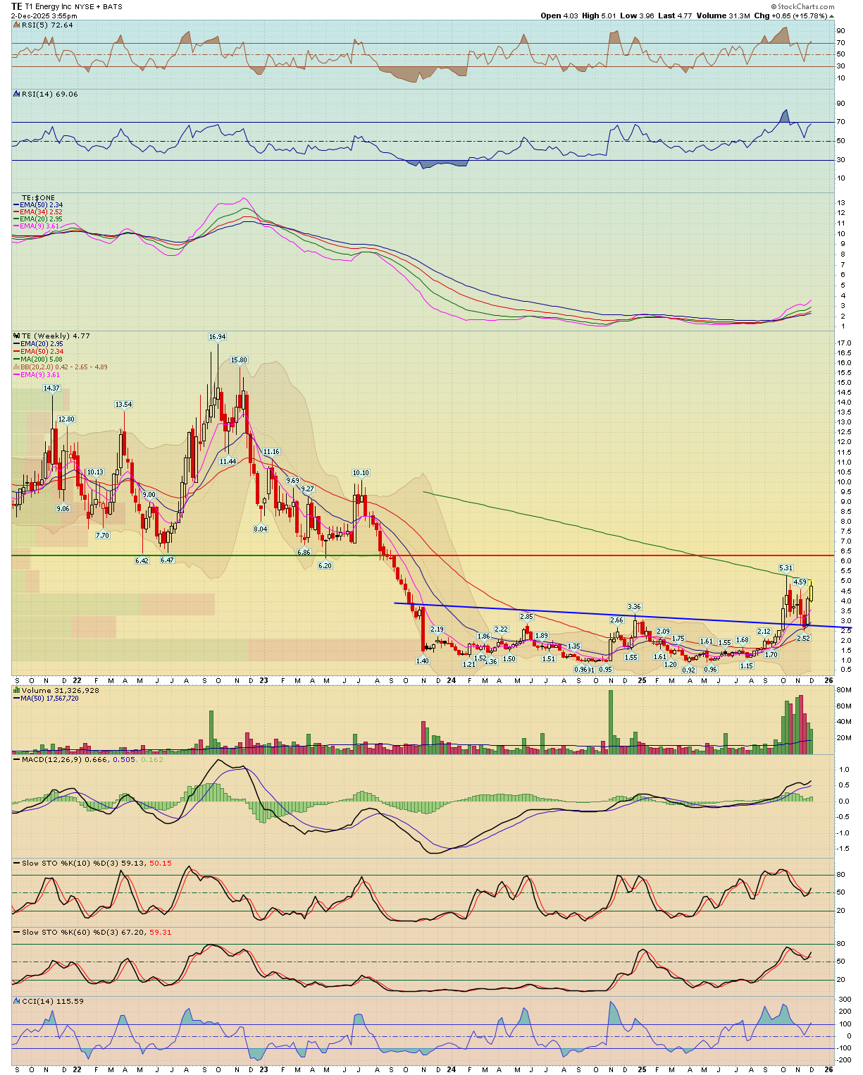 TE - Chart Link- as stated last night, the weekly has potential for swing long up to that 6.5 area