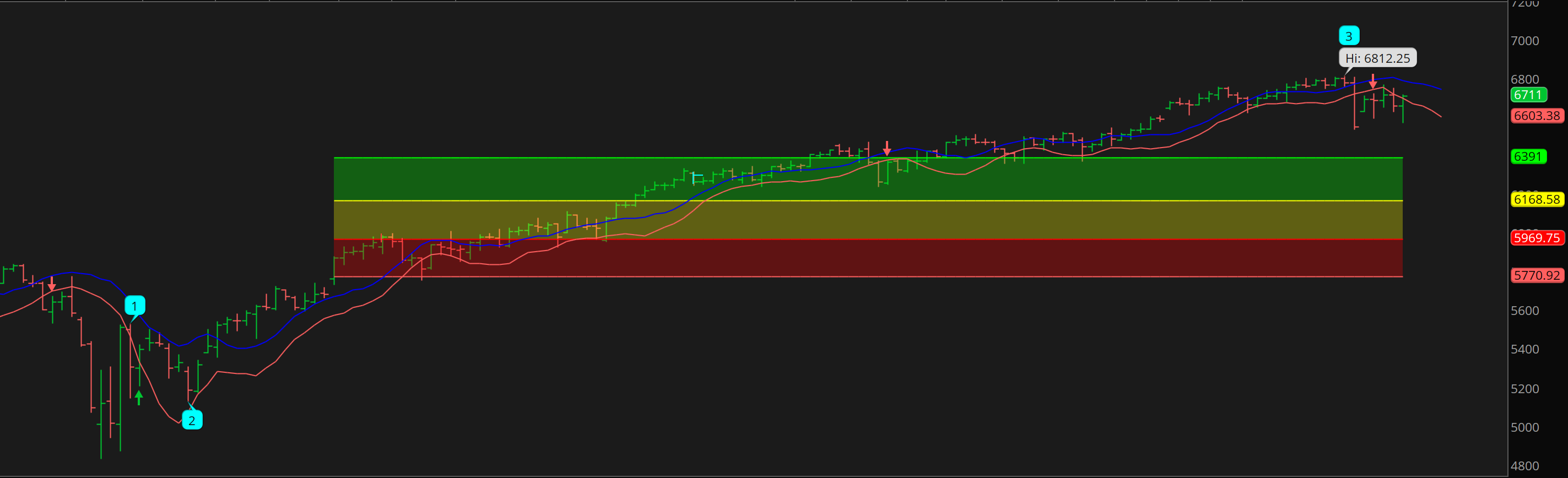 To me, in order for Wave 4 to be done we need to pull back into the area I marked in green (so roughly 6400) and that's where I'll take my hedge off. I'd love to see a wash out vs this somewhat orderly action.