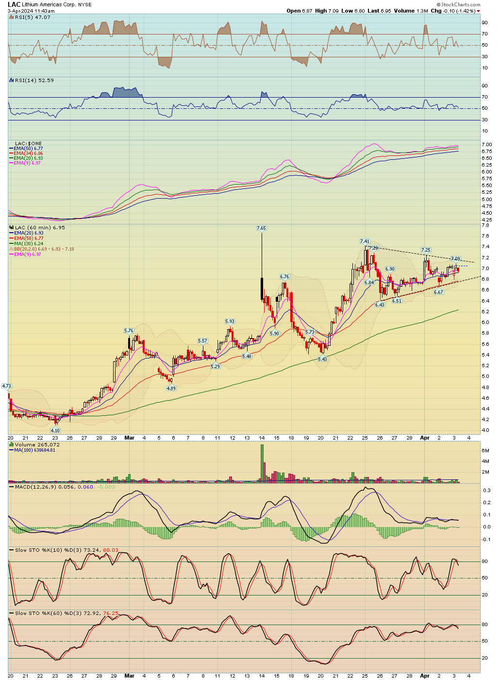 Lithium stock - wedge and pos divergence on macd