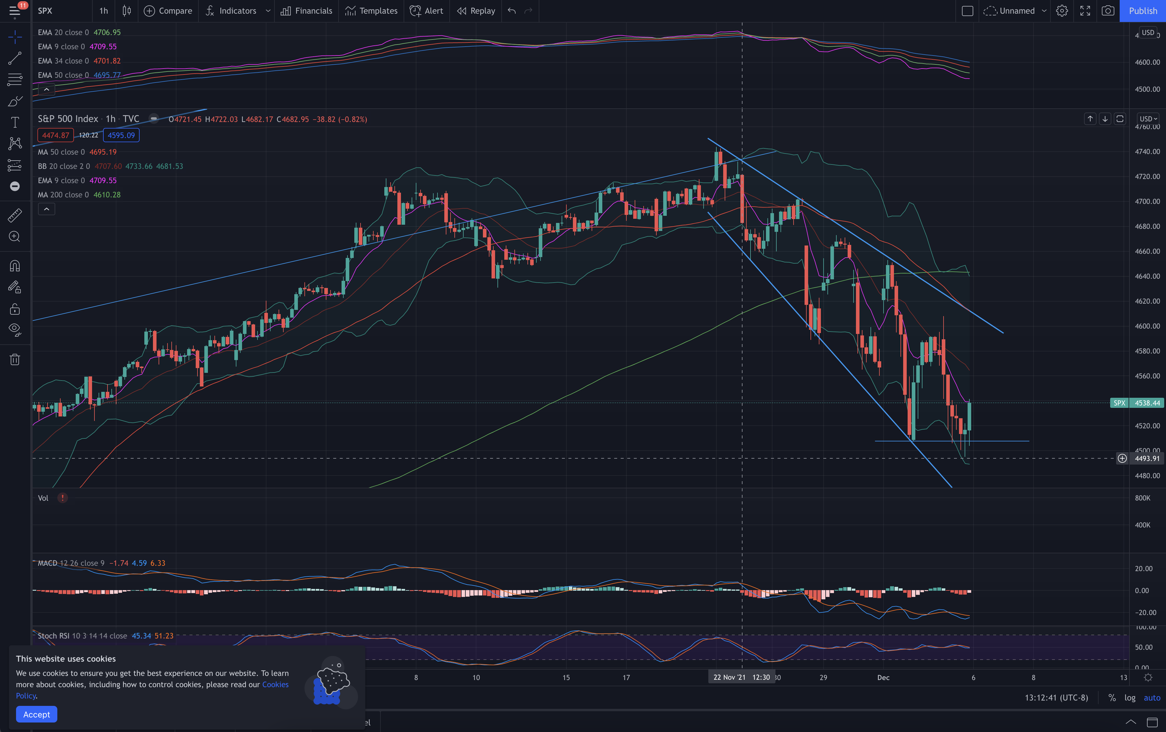 SPX 60 min w/ bullish descending broadening wedge. With that in mind, I closed out a UVXY position when SPX hit yesterday's lows.