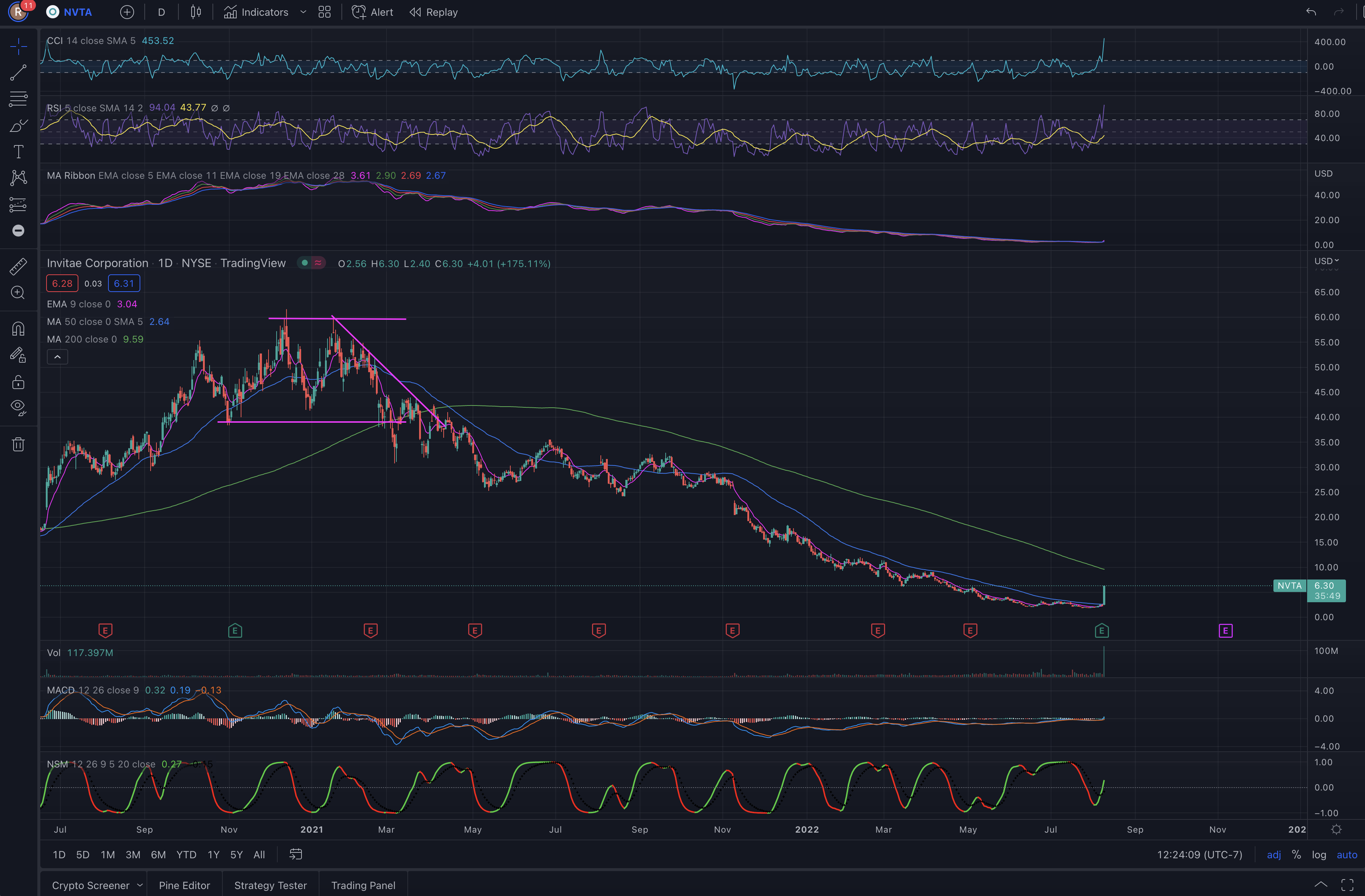 Reversion trade for NVTA (posted yesterday) is working out very well this mornnng. Down almost 50% currently.