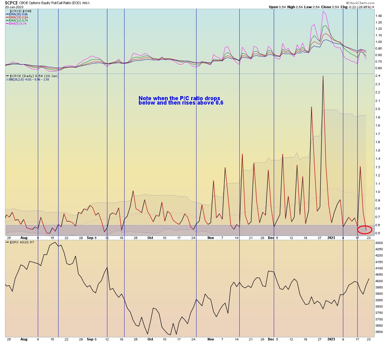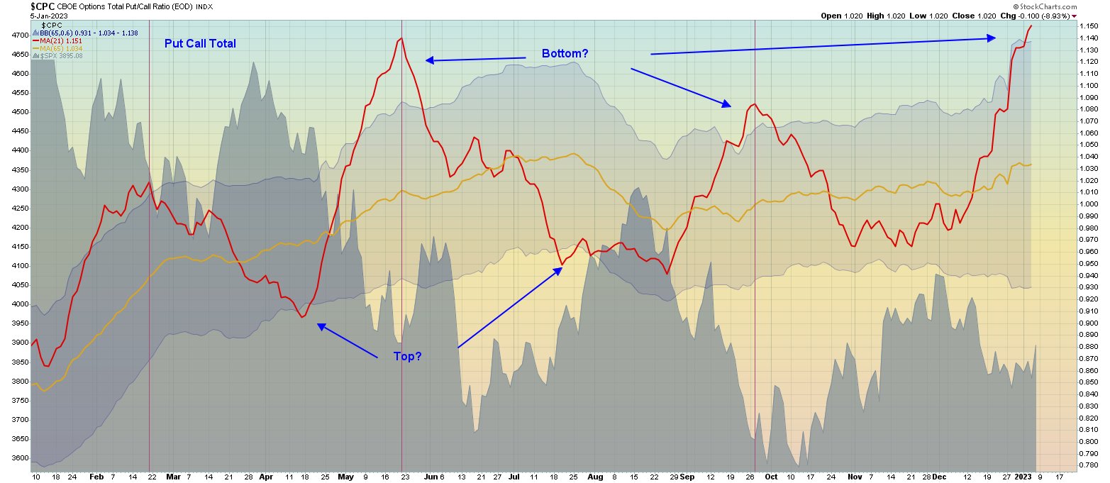 Put/Call ratio could be signaling a change of direction.(chart edited)