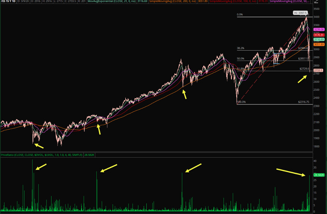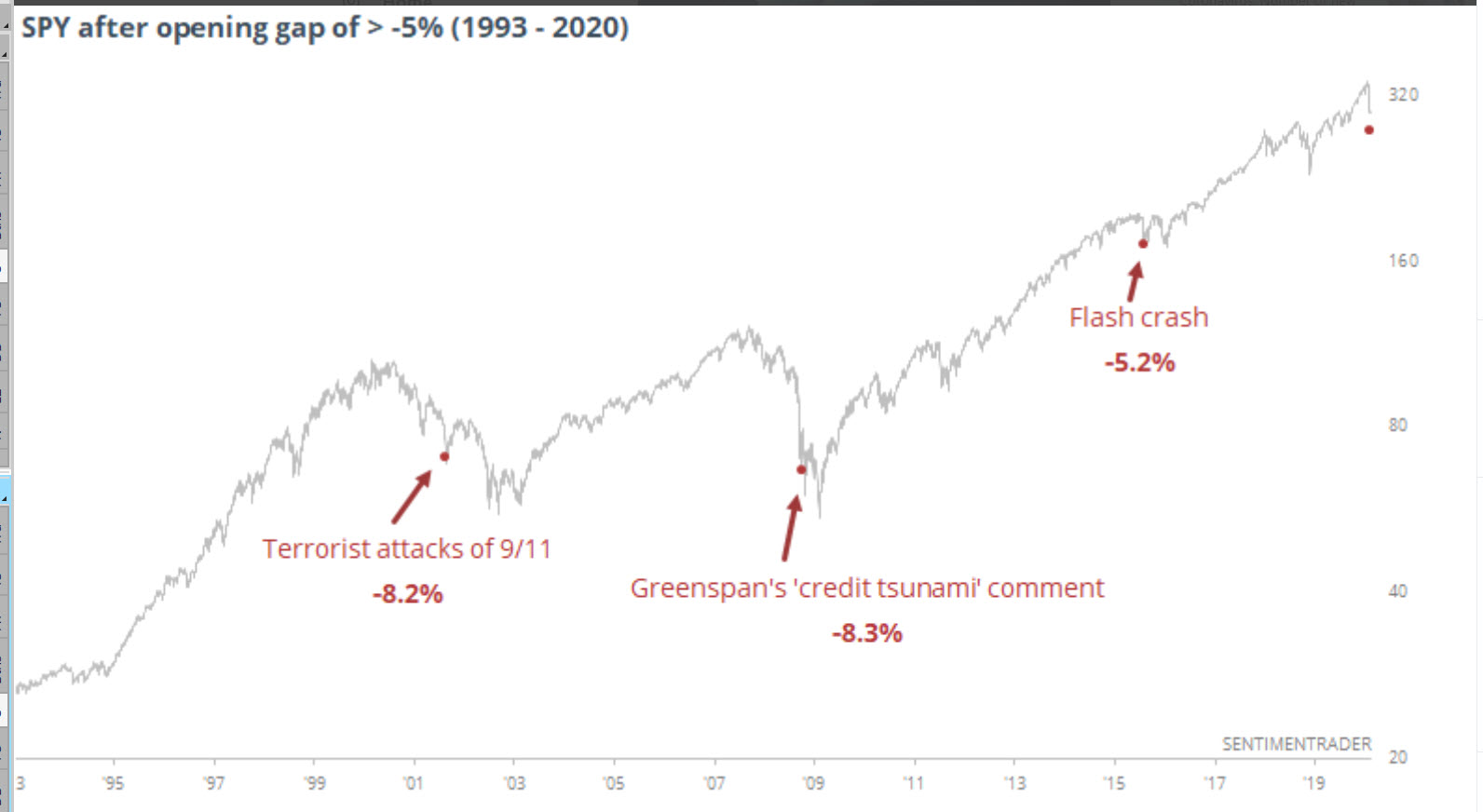 As this chart shows, downward momentum like today precedes big bounces but doesn't typically mark "the low”