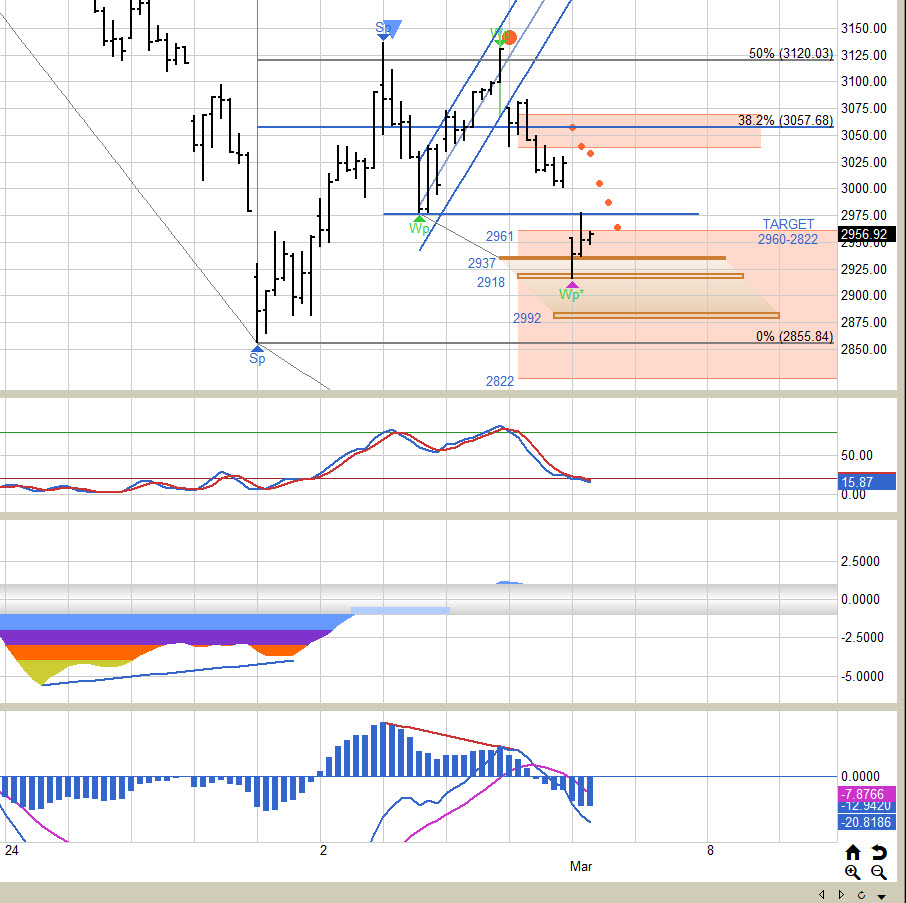 Hi mdg: There are actually several targets as indicated in blue. Main and 2ndary. These are identified by the 2 separate indicators on the main chart. The brown lines are a version of fib extensions drawn from the pivot low.