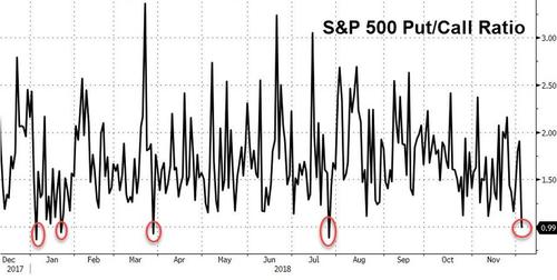S&P 500's Put/Call ratio has plunged to 2018 lows., does this bode well for a continued rally in the near term?