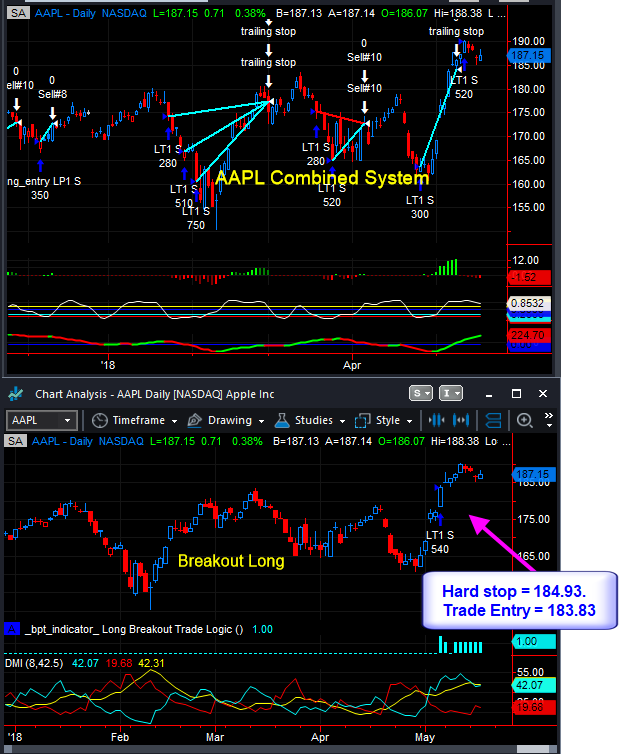 FYI regarding the AAPL system, if anyone is still long via the breakout sub system, the hard stop has moved up to $184.93, the trade entry for the breakout system was 183.83, so it's a positive stop by $1.0.