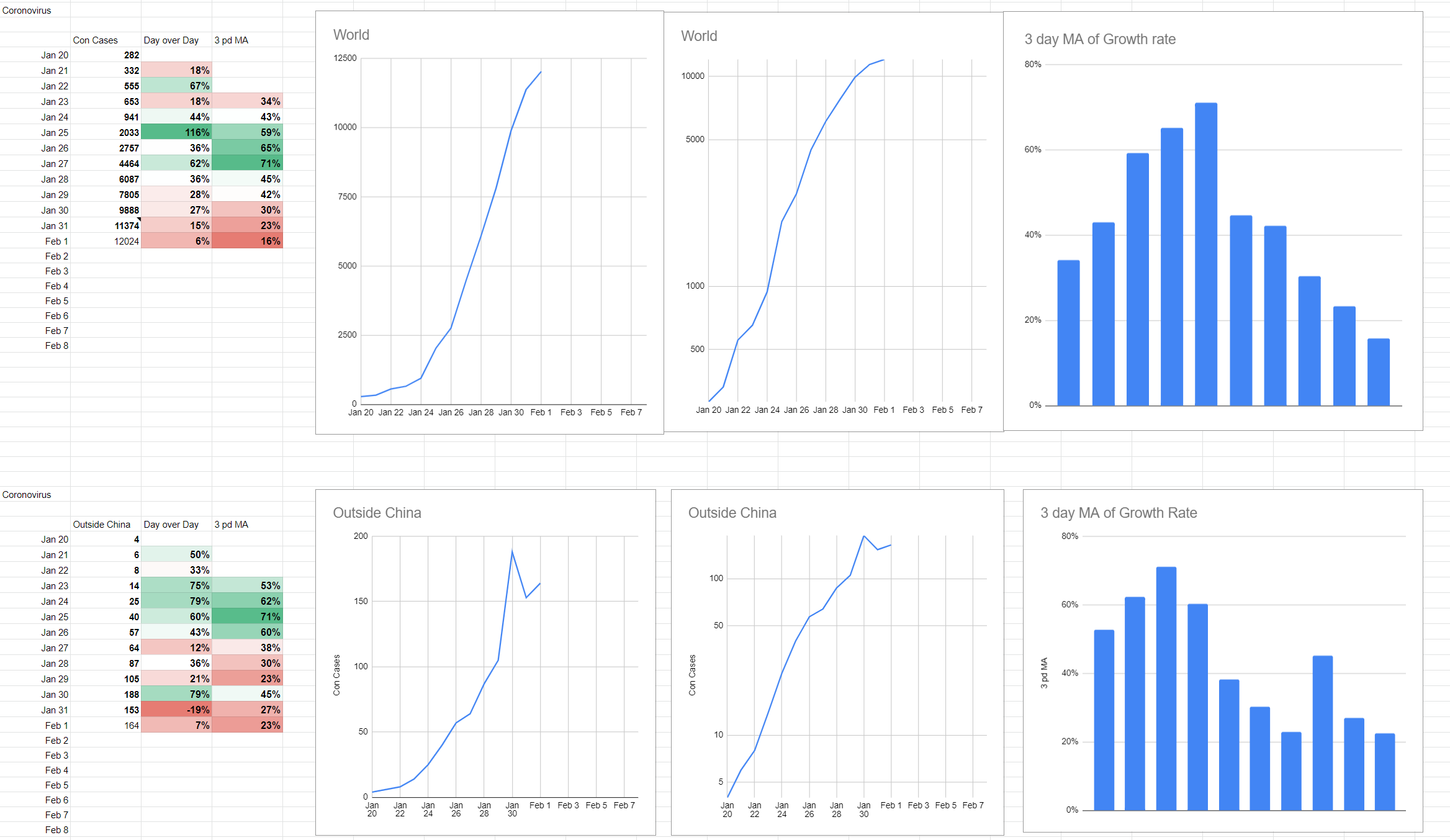 Put in latest data and numbers so far for today - also added Non-China number - presumably that is accurate if one doubts China data - also that is where risk remains from several thousand Wuhan residents who flew outside China before there were travel restrictions.