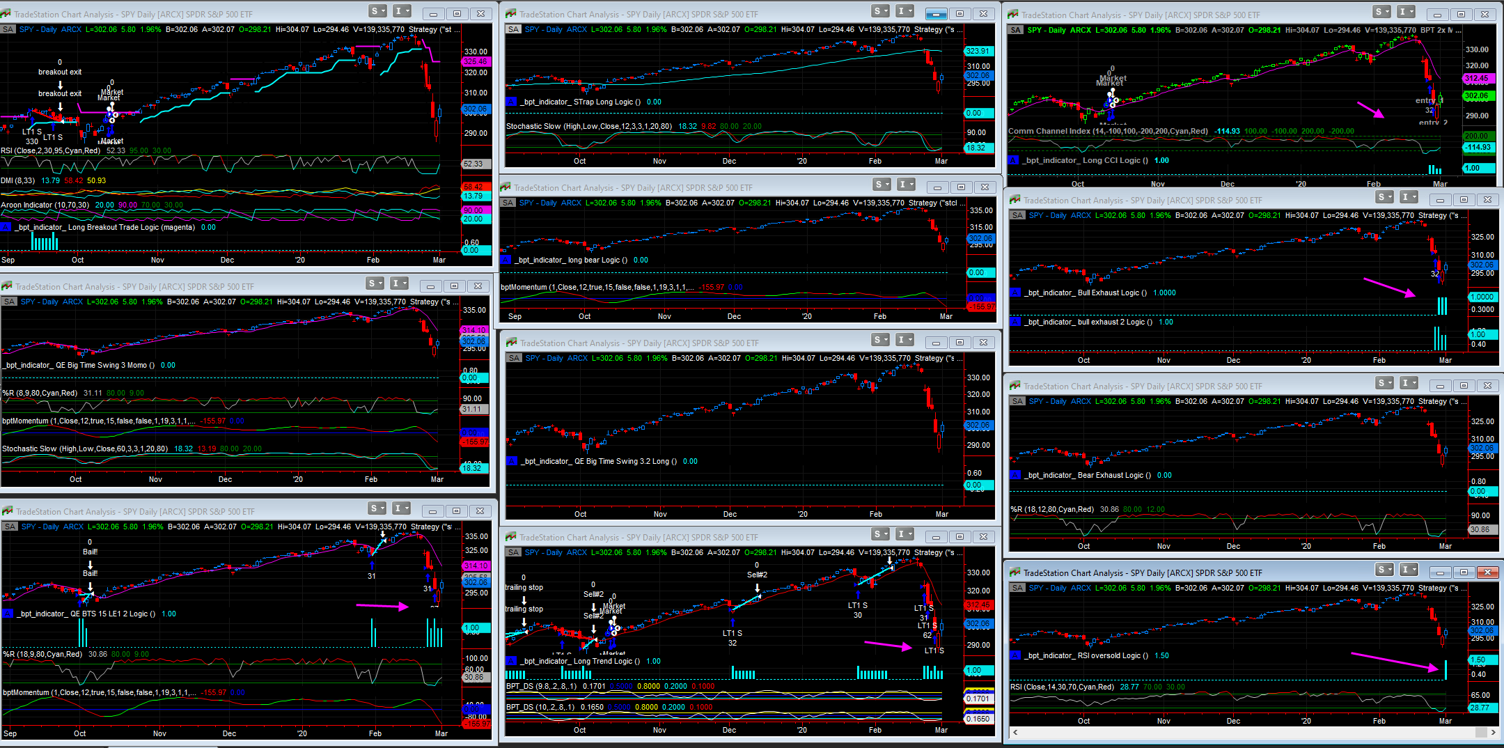 yes I talked about last week being an outlier but the trades are not closed out, I'm not going to call them losing trades here until they close out - I think there's a strong possibility that the 2nd and 3rd entries will be winners on the Trend/Pullback and the 1st and 2nd entries on the CCI and QE BTS will be winners. Unless the market were to dump another 5 or 10% here, which anything is possible. As I said I plan to let the trades go where they may, close out then we'll reassess. Otherwise I have no plans too stop the SPY systems, the only thing I said is that we will all look at the trades after they close out and then see what changes we can make etc. And as Steviebe294 just said - yes we can also consider some flag like that - but I think that needs to be made after the trades close out. Also some flag to suspend trades could only apply to some systems but not globally - for example I have systems like the bear long, bull exhaustion that ONLY trigger on market melt downs - you can't flag those out because they are meant to trigger in situations like this