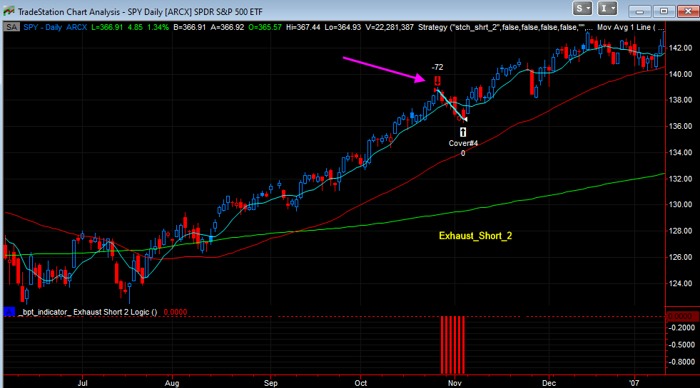 Exhaustion Short sub system, all these occurred in bull markets, so