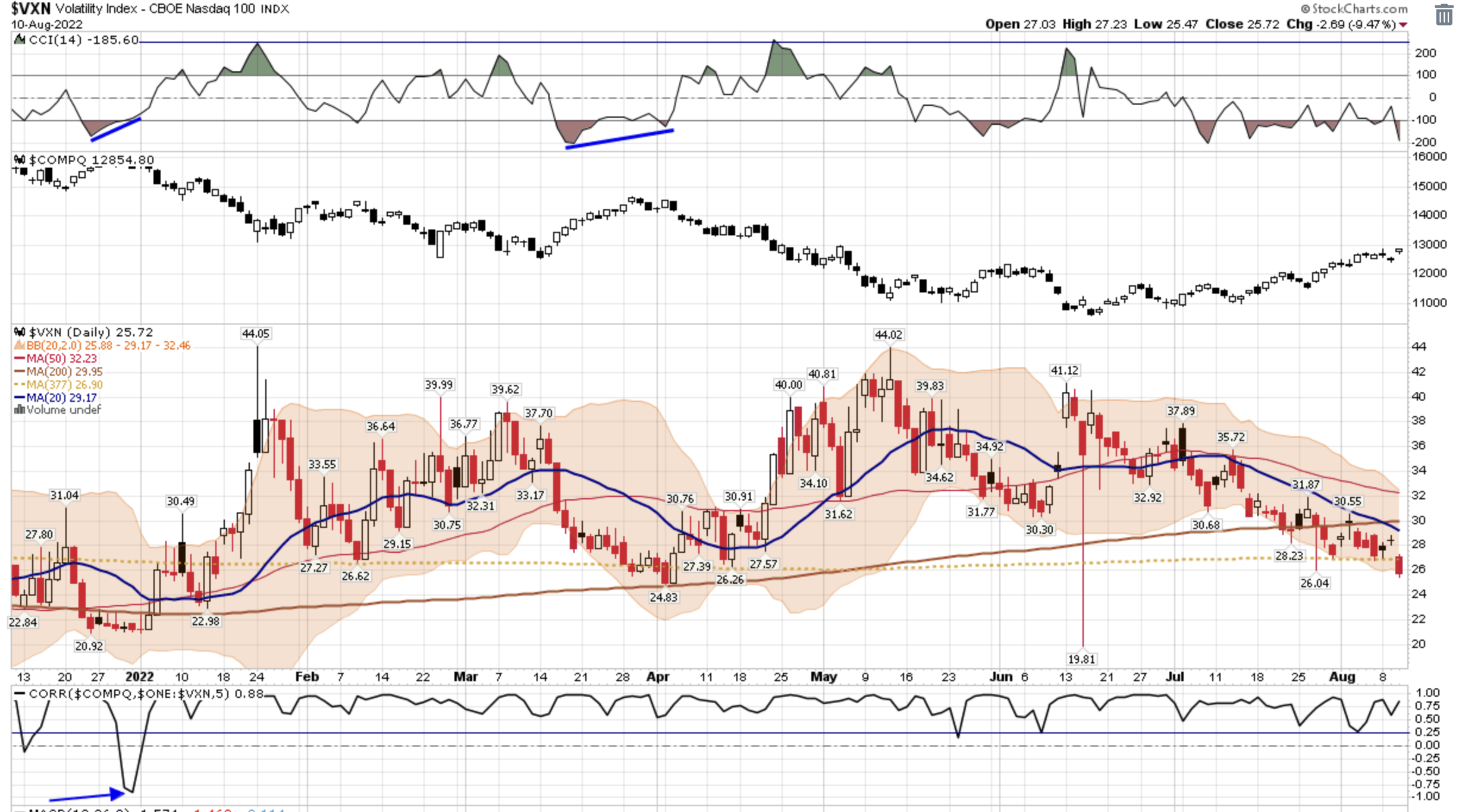 $VXN also. But not $RVX, though it certainly was well below its lower band earlier today