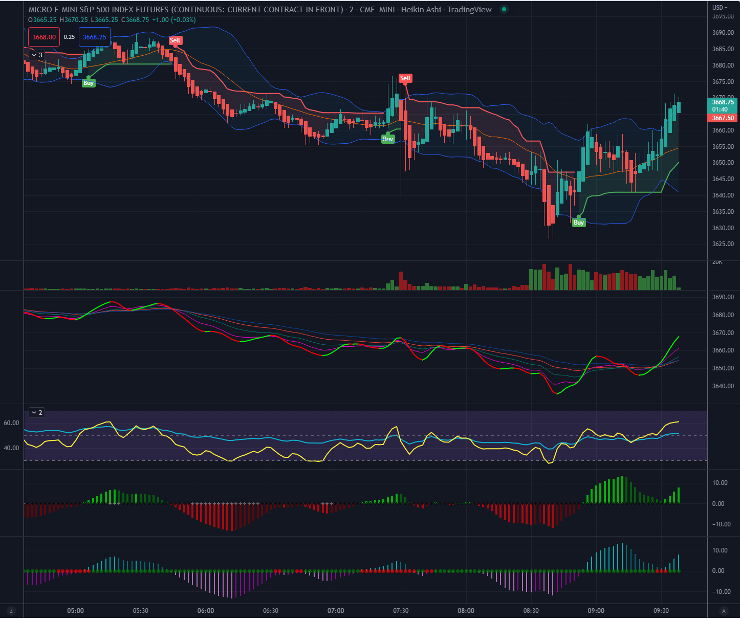 Trading View Heiken Ashi, BPT MA with ribbon, etc