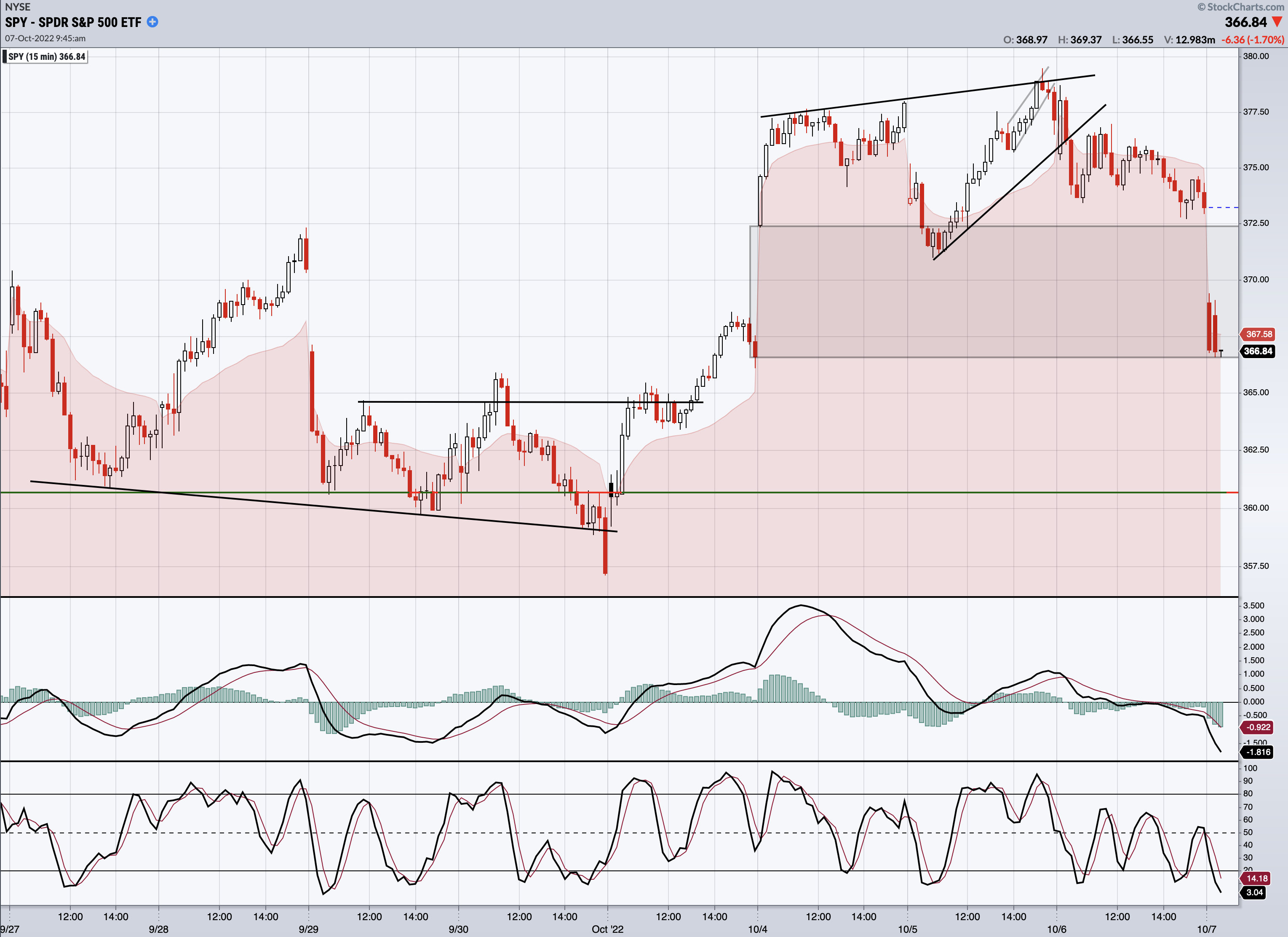 SPY has dropped well into the gap premarket. Would be a shame not to complete the fill down around 366.50, but we shall see