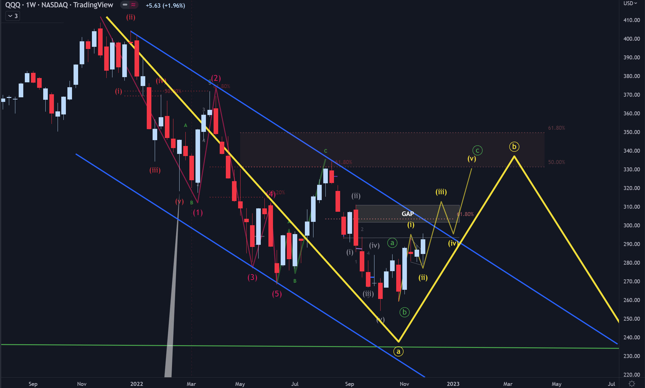 i/ii, and prices would gap to the downside on Monday and begin wave