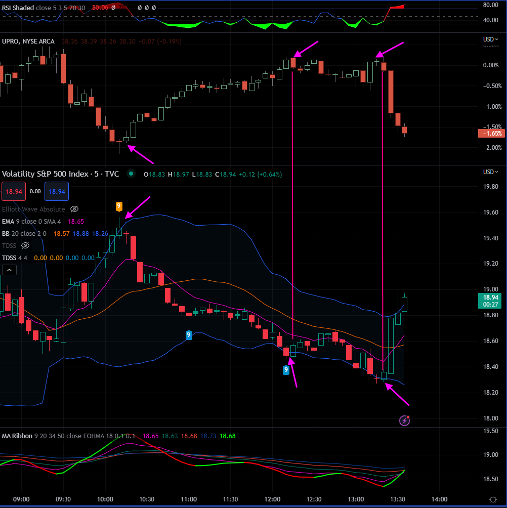 updated view of the 5 min VIX with UPRO - been giving amazing