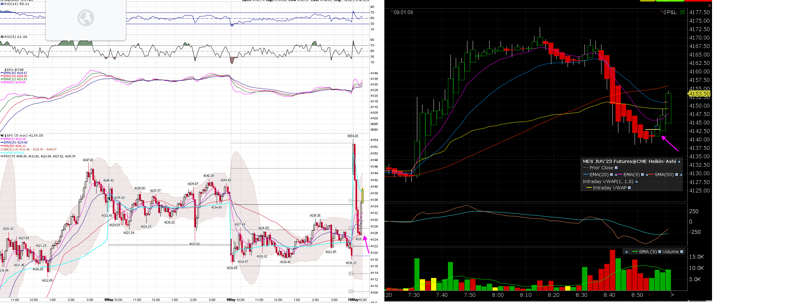 wow I managed to buy that bottom when SPX testes the 50 SMA on the 5 min - I got into MES via the 2 min Heiken Ashi chart - I'm really liking those Heiken Ashi bars lately for trading MES on - triggered off the small doji