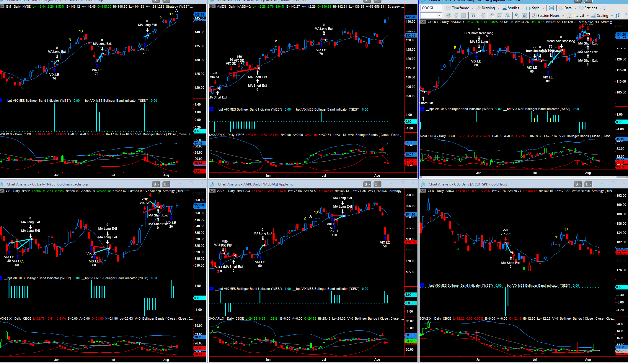 regarding the volatility systems: GS which went long on 8/3 is closing out today, AAPL is taking a long. longer term AAPL has real problems with that symmetry break, but eventually I'd expect a lower high bounce so more than likely the system trade will exit on that