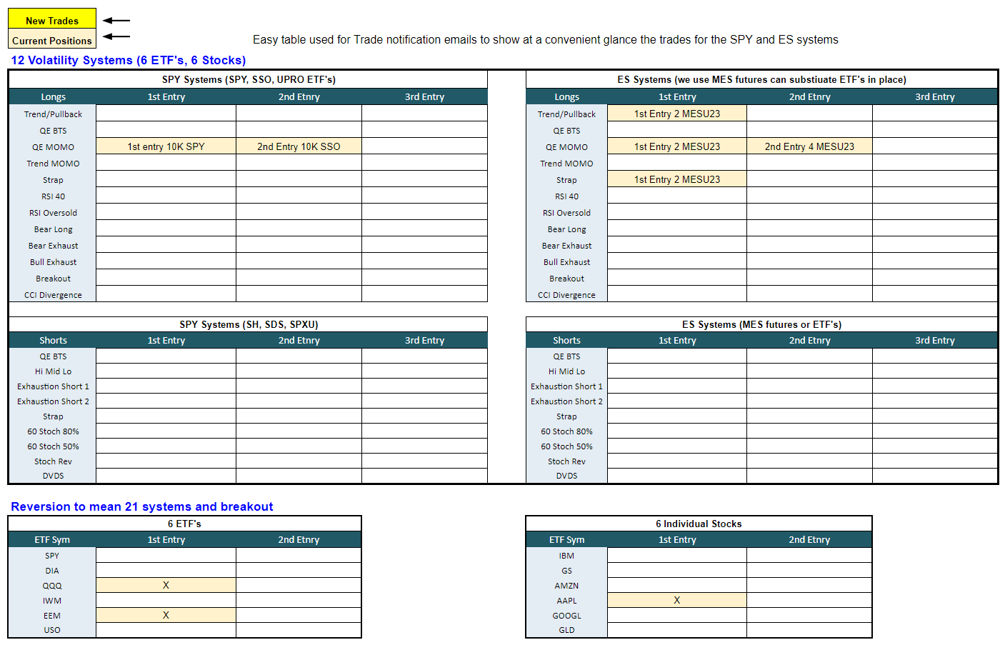 I added the 12 volatility systems to the spreadsheet - gives a clean way to see what's open at a glance