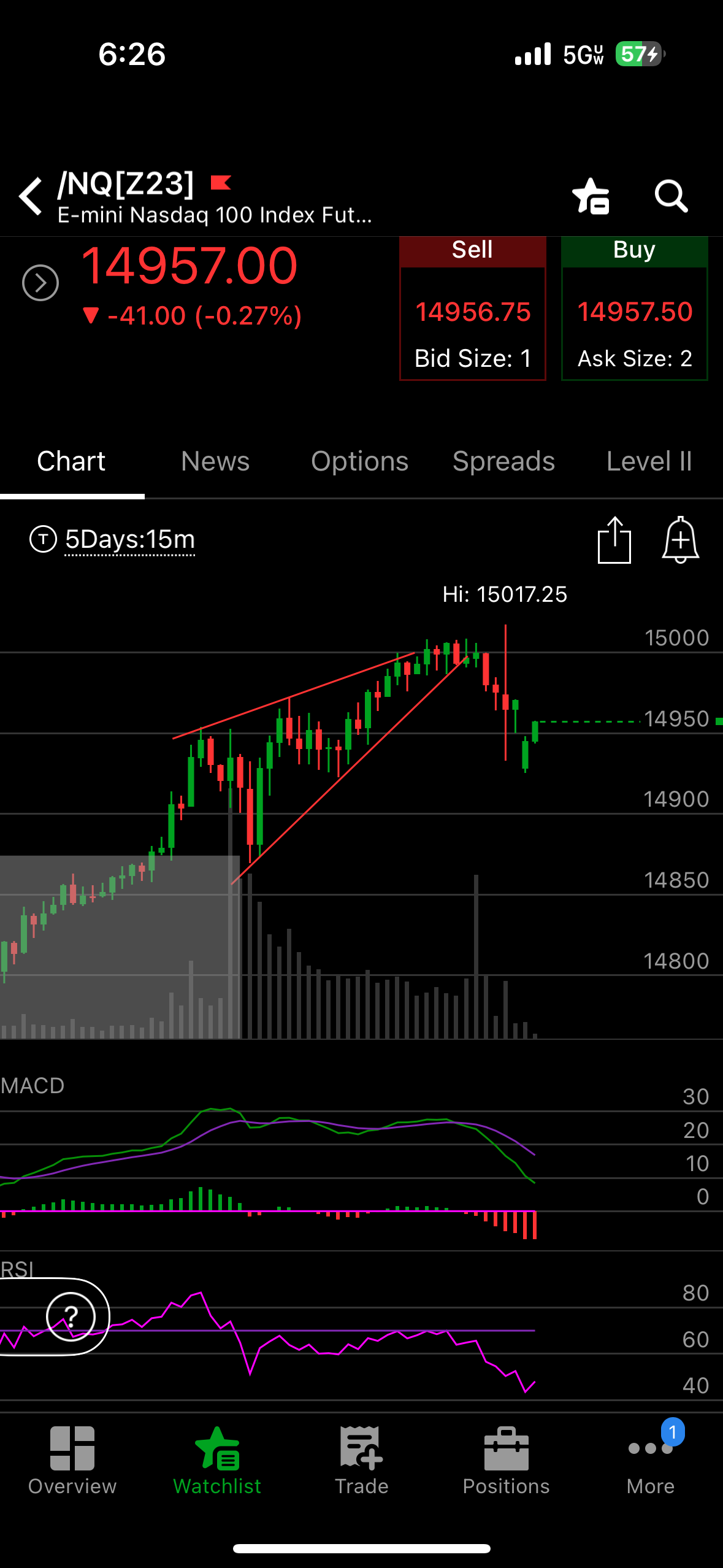 Nq 15 min. Nice pull back. Could morph into a head and shoulder top. Thanks apple.