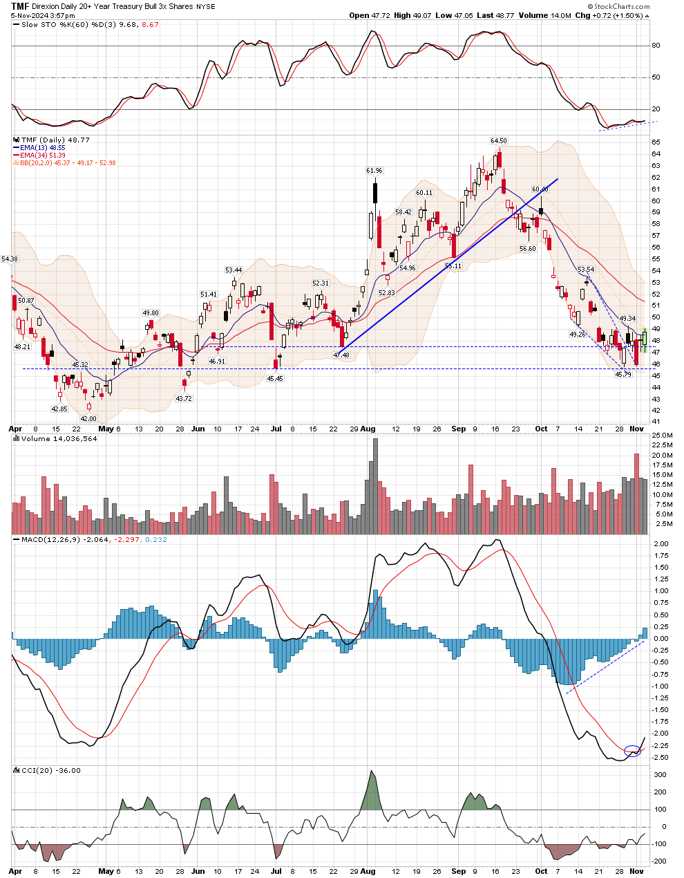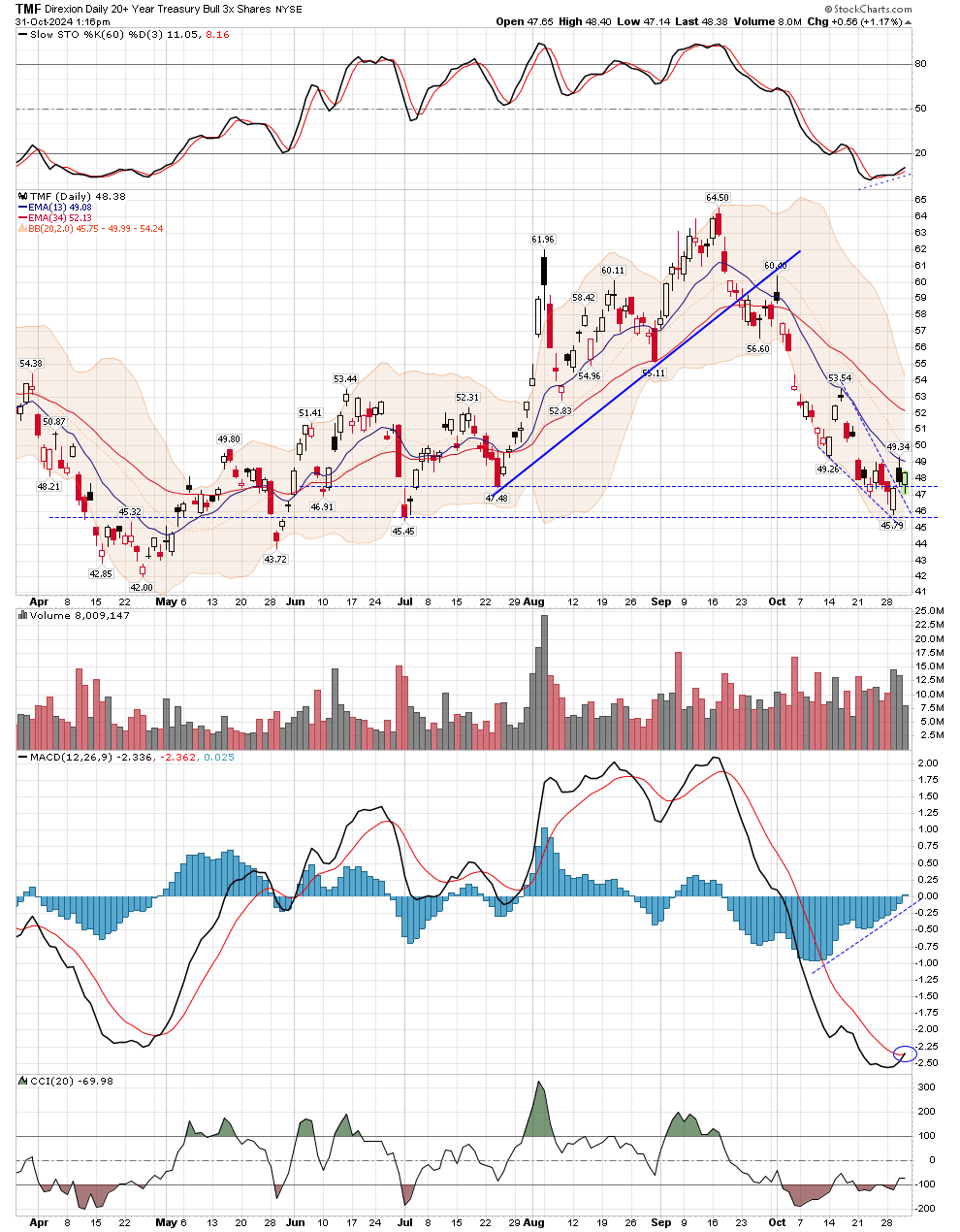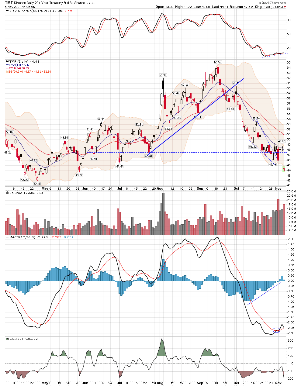 TMF (TLT) ... bottom fell off hard ...