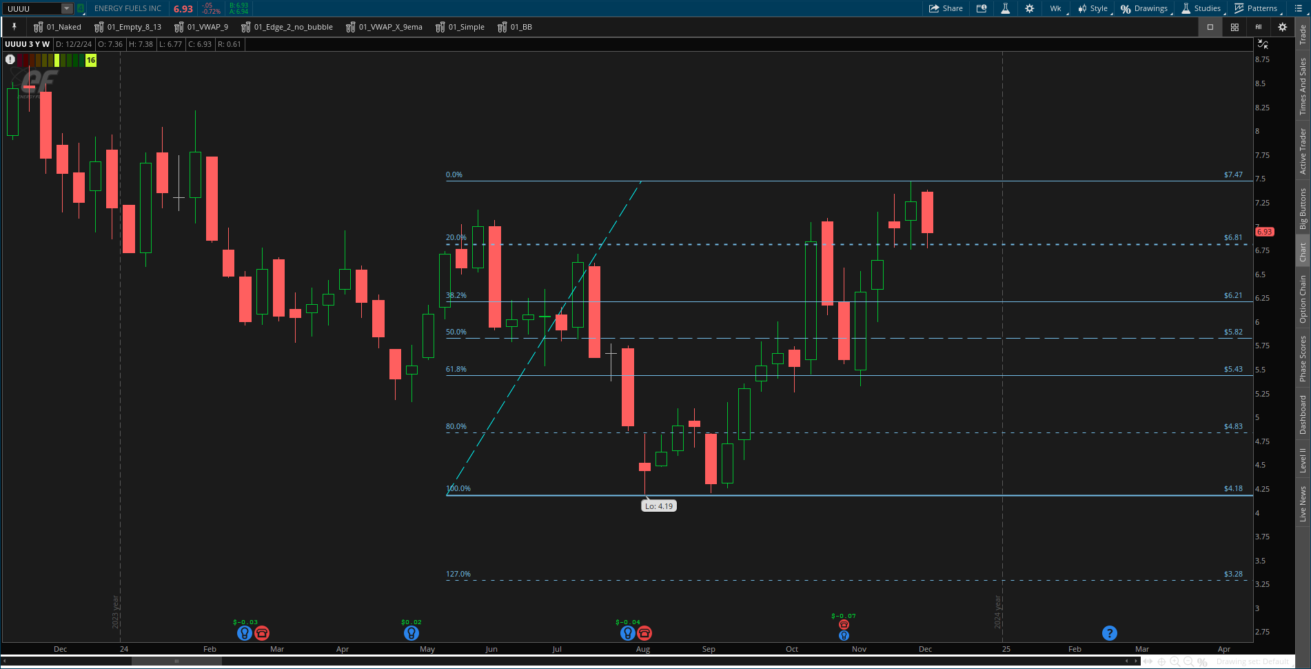 Here is a weekly chart of UUUU with fibs.