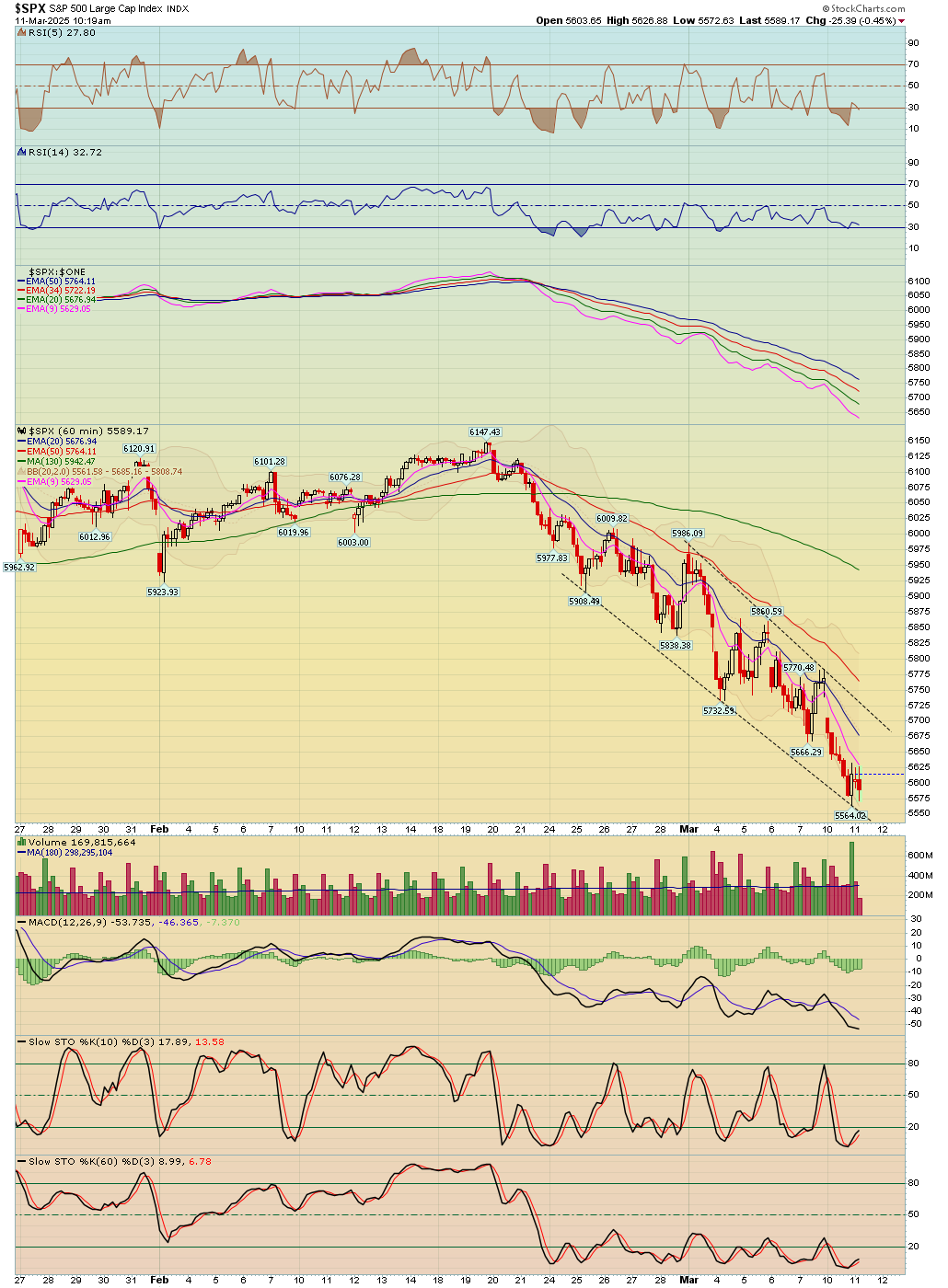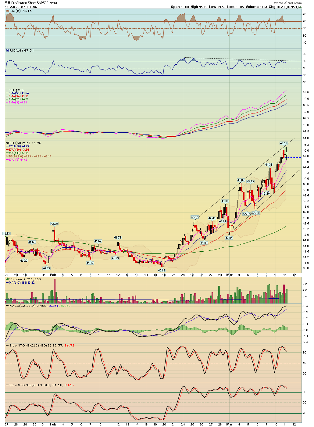 SPX 60 MINUTES AND SH 60 MINUTES - both in a channel and no macd divergence, however they have rsi divergences