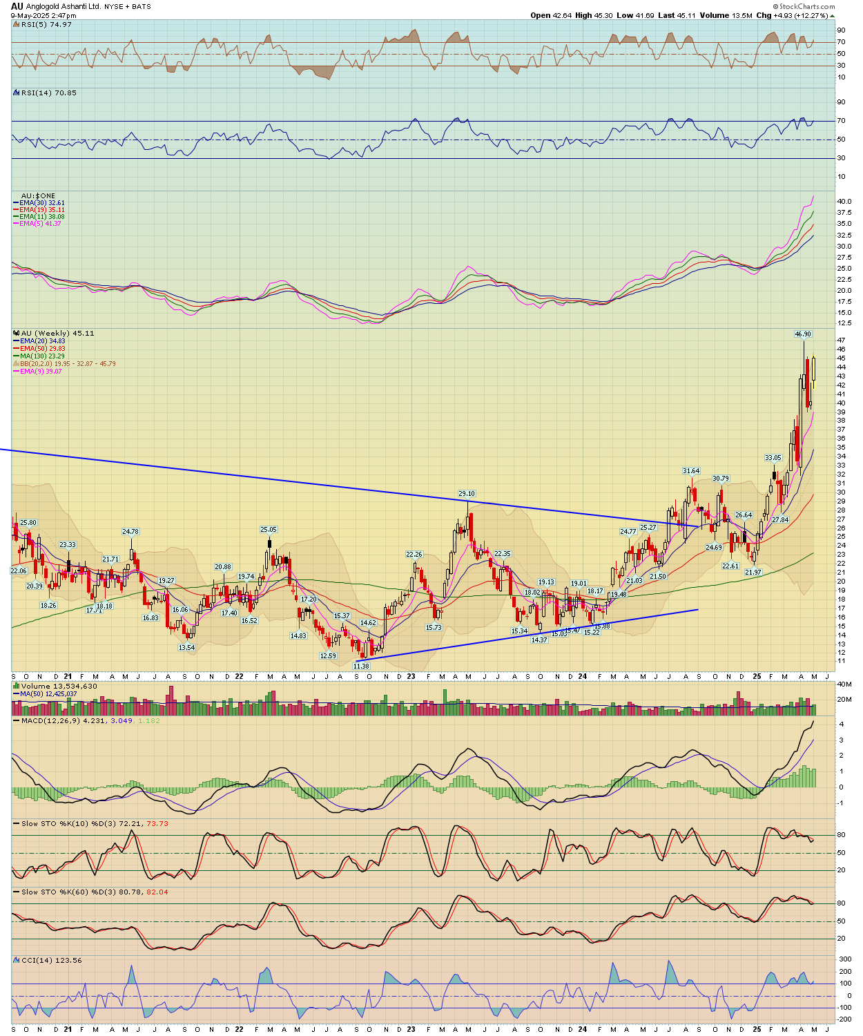 AU always performs well when Gold is on the move! Up 2.92 today