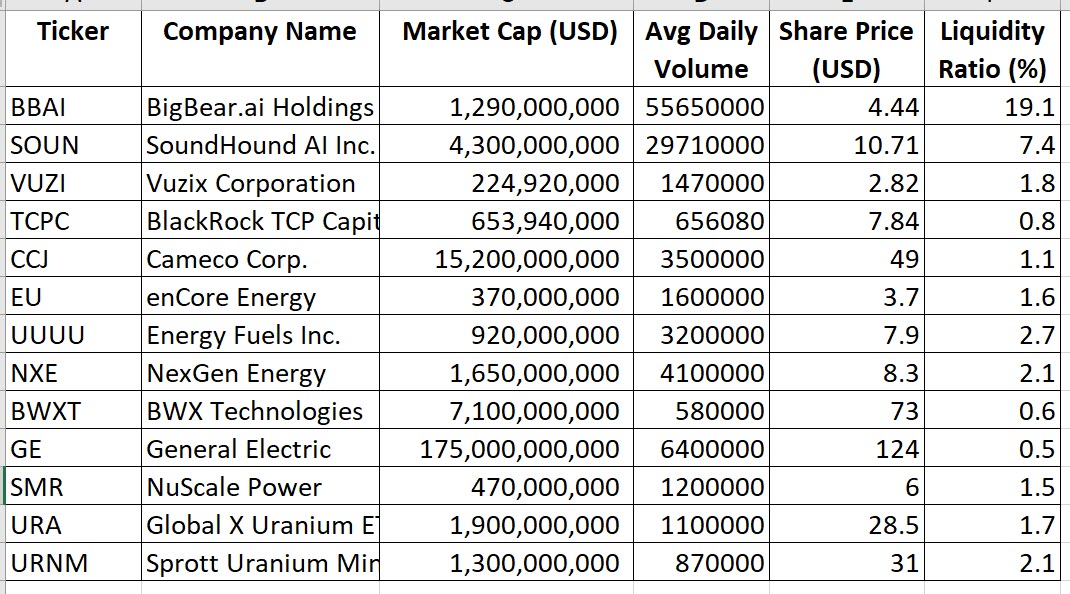 See formula i posted, its a measure of dollar value of daily trading, to market cap, its a different measure type